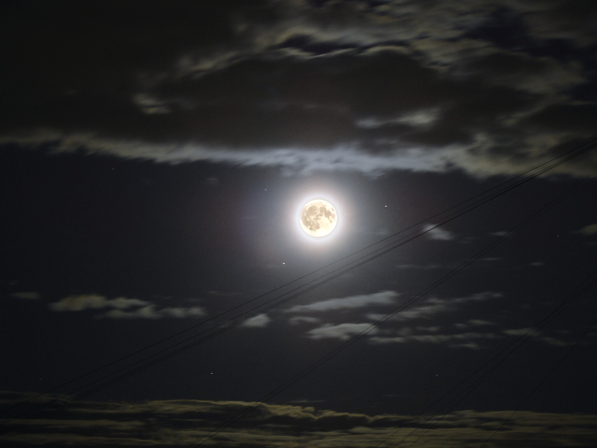 Снимки с Луной и звёздами композитные. Это означает, что делалось два снимка - с большой выдержкой (2 секунды верхний снимок, 5 секунд следующий) для звезд, и с короткой выдержкой (1/100 секунды) для Луны. Потом снимки совмещались, и фрагмент из снимка с короткой выдержкой заслонял собой передержанную совершенно белую, без каких-либо деталей, Луну со снимка с большой выдежкой.