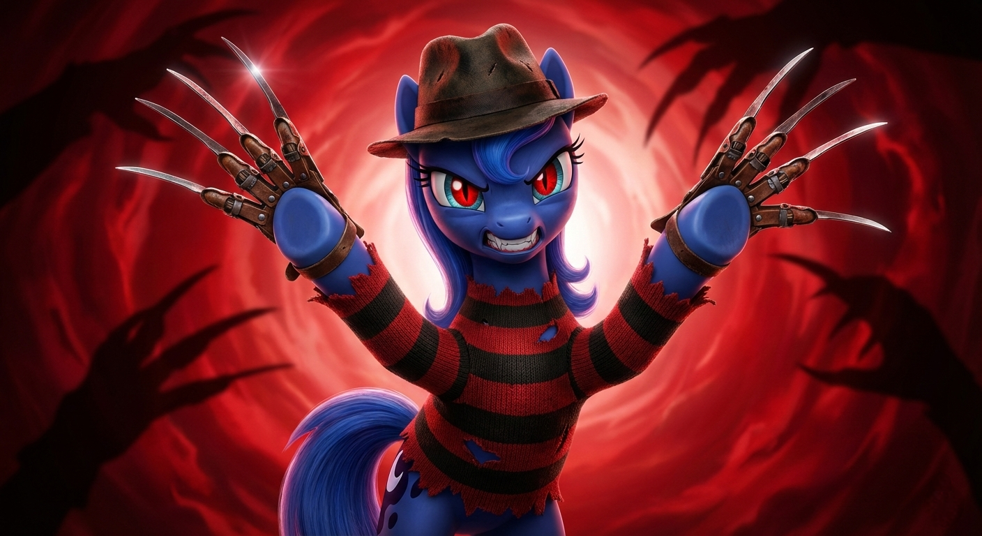 20 D.Kalashnikov My Little Pony Луна, которую вы не захотите видеть во сне 23 часа назад Идею для арта дал мне TheLight3D, за что ему большое спасибо. [моё] Контент нейросетей My Little Pony Princess Luna Фредди Крюгер MLP Crossover 4 1 Ещё 0