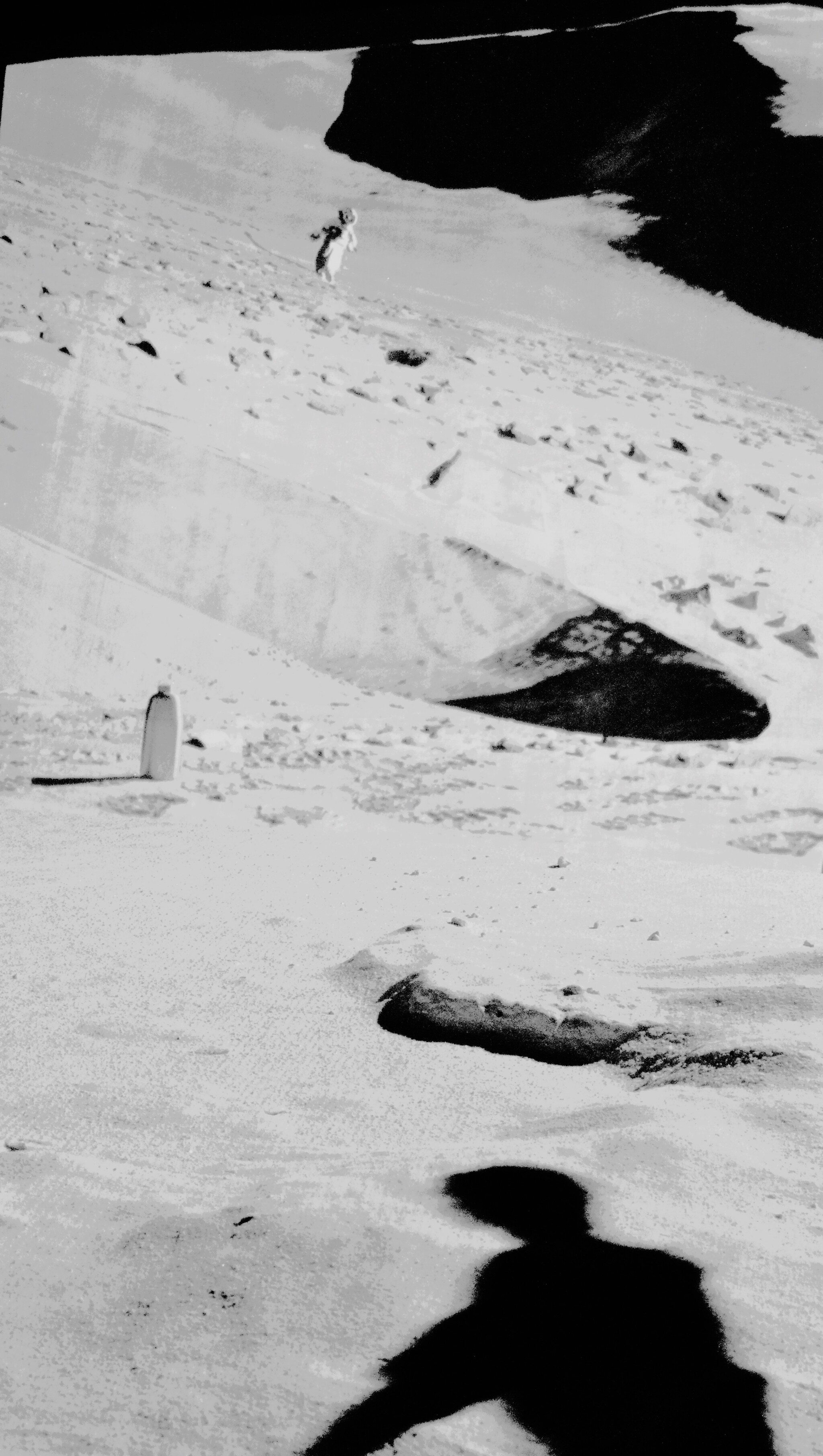 Лунная высадка и след оставленный астронавтом на самом краю лунного кратера. Панорама следа оставленного астронавтом передана луноходм Москва с поверхности Луны.