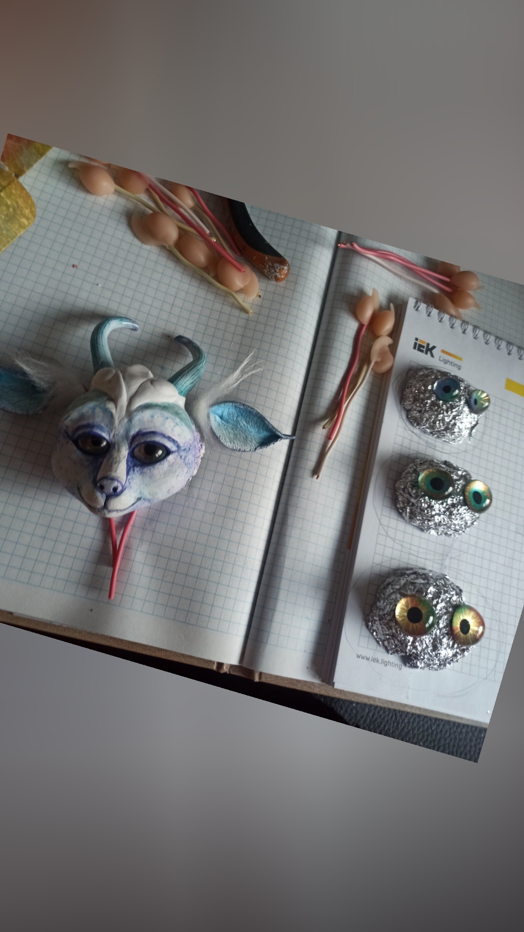 Леплю морду из полимерной глины или самоотвердевающей массы. Процесс лепки по внутреннему ощущению "так должно быть".
