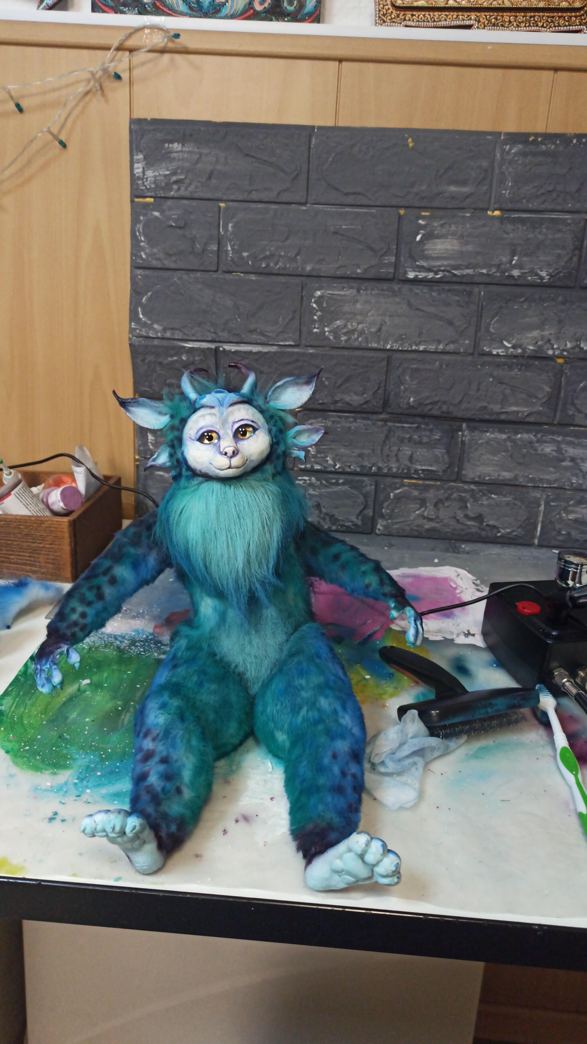 Добрый день, любители рукотворных дел, сегодня покажу очередную куклу на подвижном каркасе. Лунник- лунный зверь, ночной ушастый зверёк. Очень любит ягоды, особенно чернику).