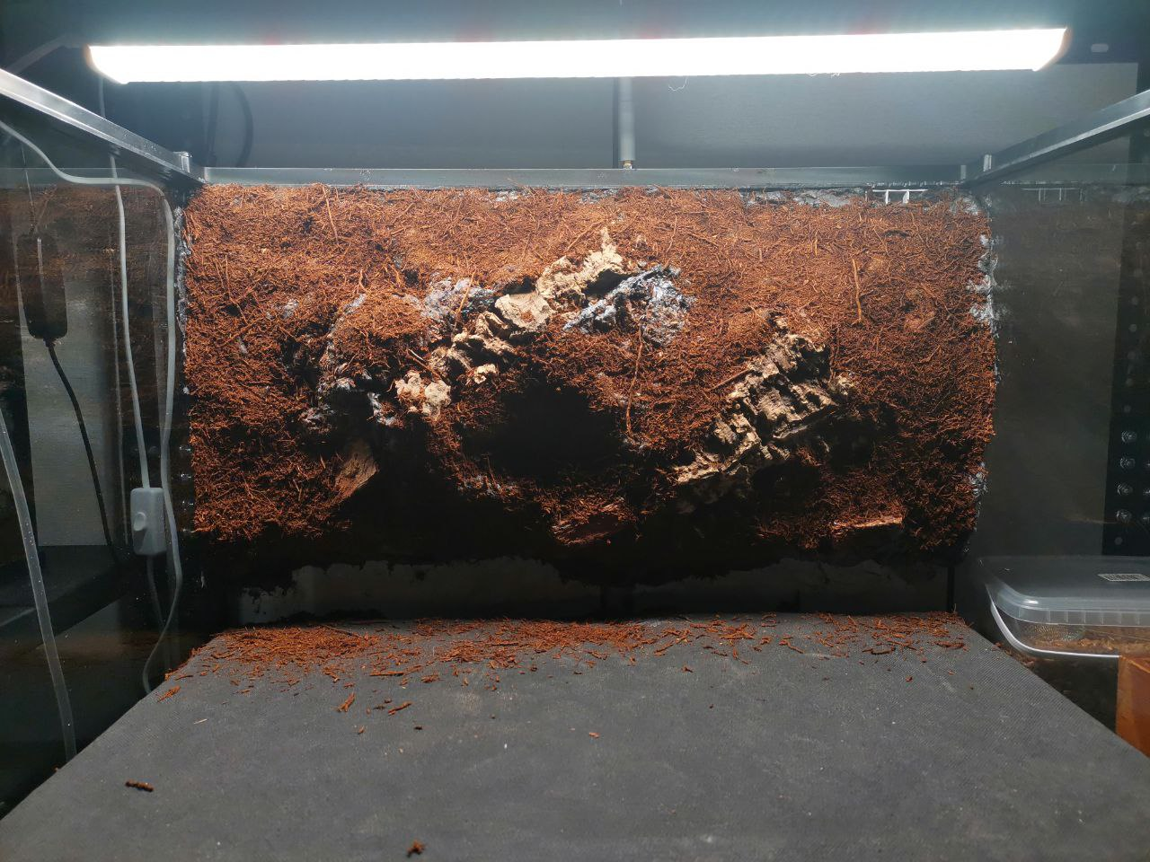 Для стабильности экосистемы, в грунт запущены колонии мокриц, хищные клещи, подуры и дождевые черви.
