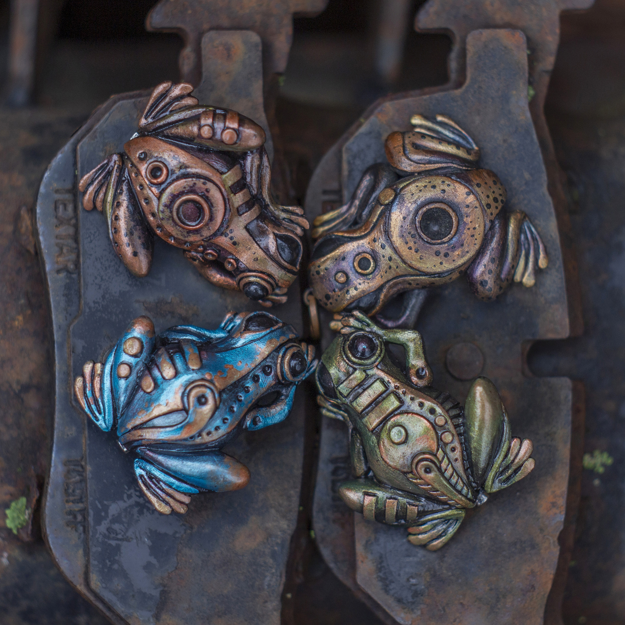 Броши из полимерной глины, окрас брони акрил, рост особи 38 мм. Создавались при помощи скальпеля, вязальной спицы и иглы.