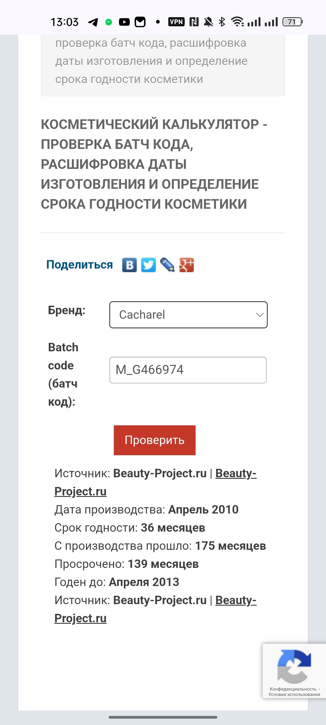 Пробиваю данный код и что вы думаете?? Духи произведены в апреле 2010 года и срок годности до апреля 2013 года. Классно да!! Особенно классно, что сами сотрудники предоставили сайт на котором проверить и объяснили как это сделать))