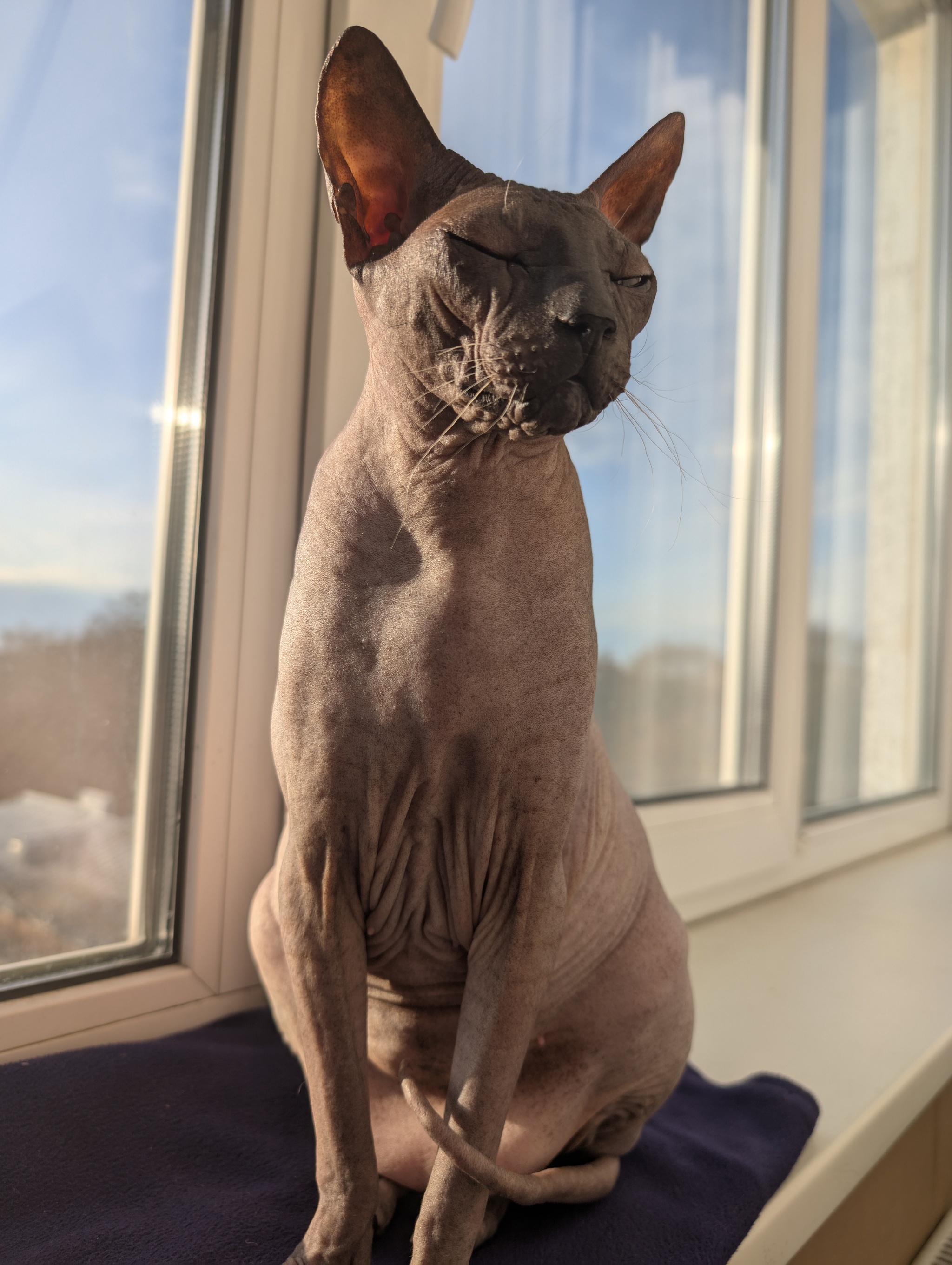 Когда то давно в детстве, мама пошла в гости к знакомой и взяла тебя с собой и там был кот породы петерболд, а ты такого не видел ни когда и не ожидал встретить в маленьком дальневосточном городке в 90х, он казался каким то инопланетным существом. Красивый, какой то прям аристократичный, приятный на ощупь. Ну и с той поры я всегда мечтал, что когда вырасту заведу себе лысого кота.