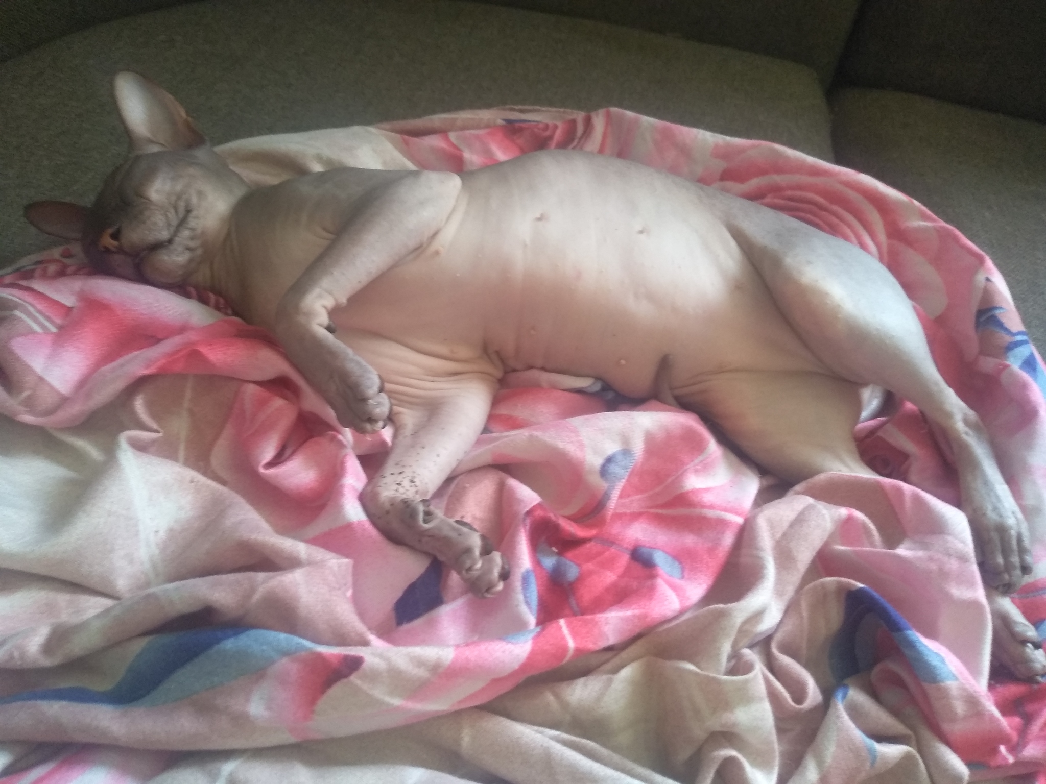 В целом, сфинкс - такая же кошка, только со своим особенным металлически-грибным запахом, отсутствием шерсти и любовью к теплу. Люди, которым моя коша не по душе - в гости ко мне не ходят, ибо неча им тут и делать) Кстати, отсутствие шерсти, почему-то, в глазах многих, делает этих котиков гипоаллергенными - нифига подобного, товарищи: аллергия может быть на слюну, на пот, на кожное сало, на перхоть животного, без разницы - кошка это, черепаха или улитка...