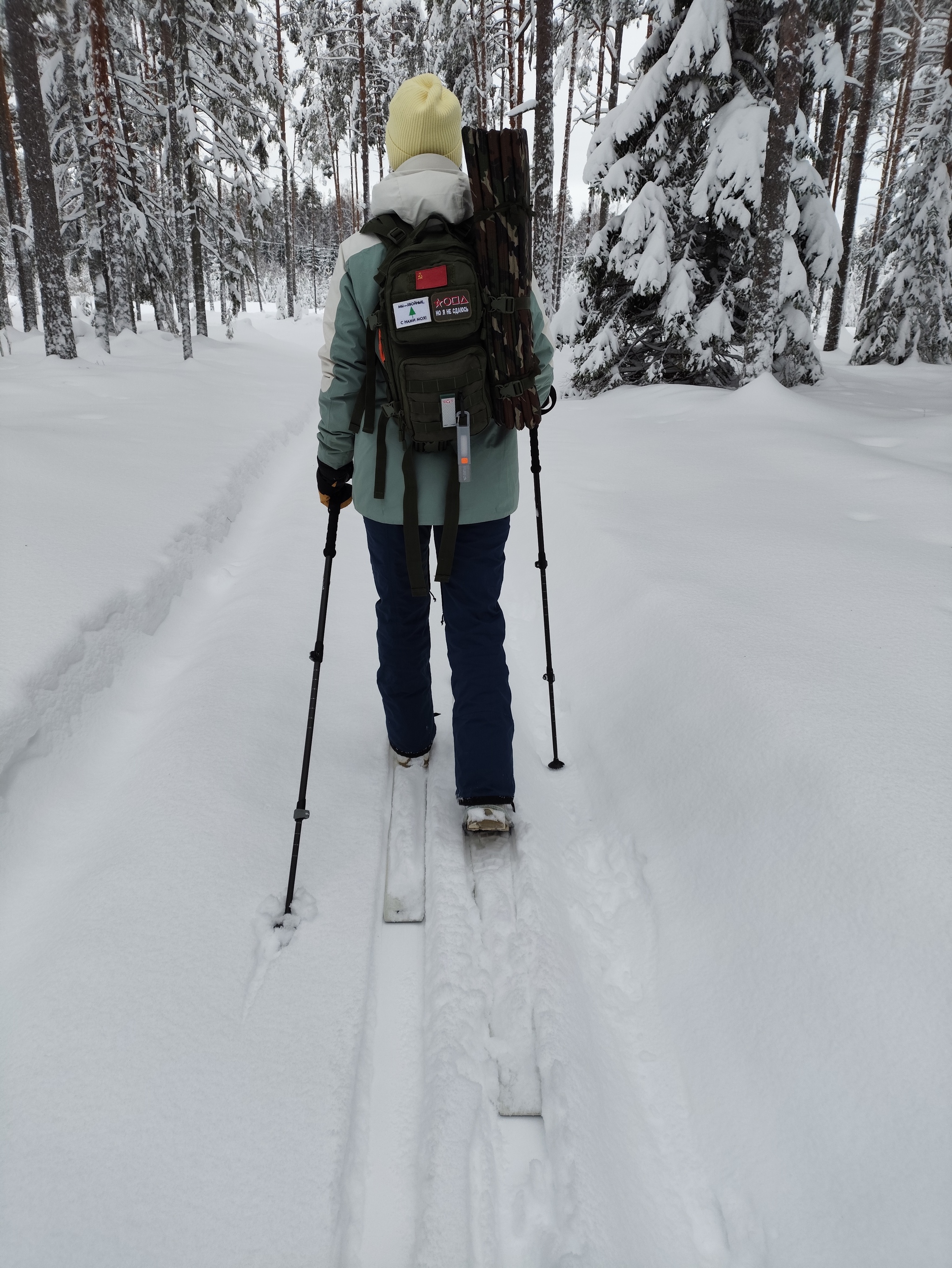 Военно-туристические пластиковые лыжи позволяют ходить даже по пухляку. Сегодня прошли по снегу 50 см