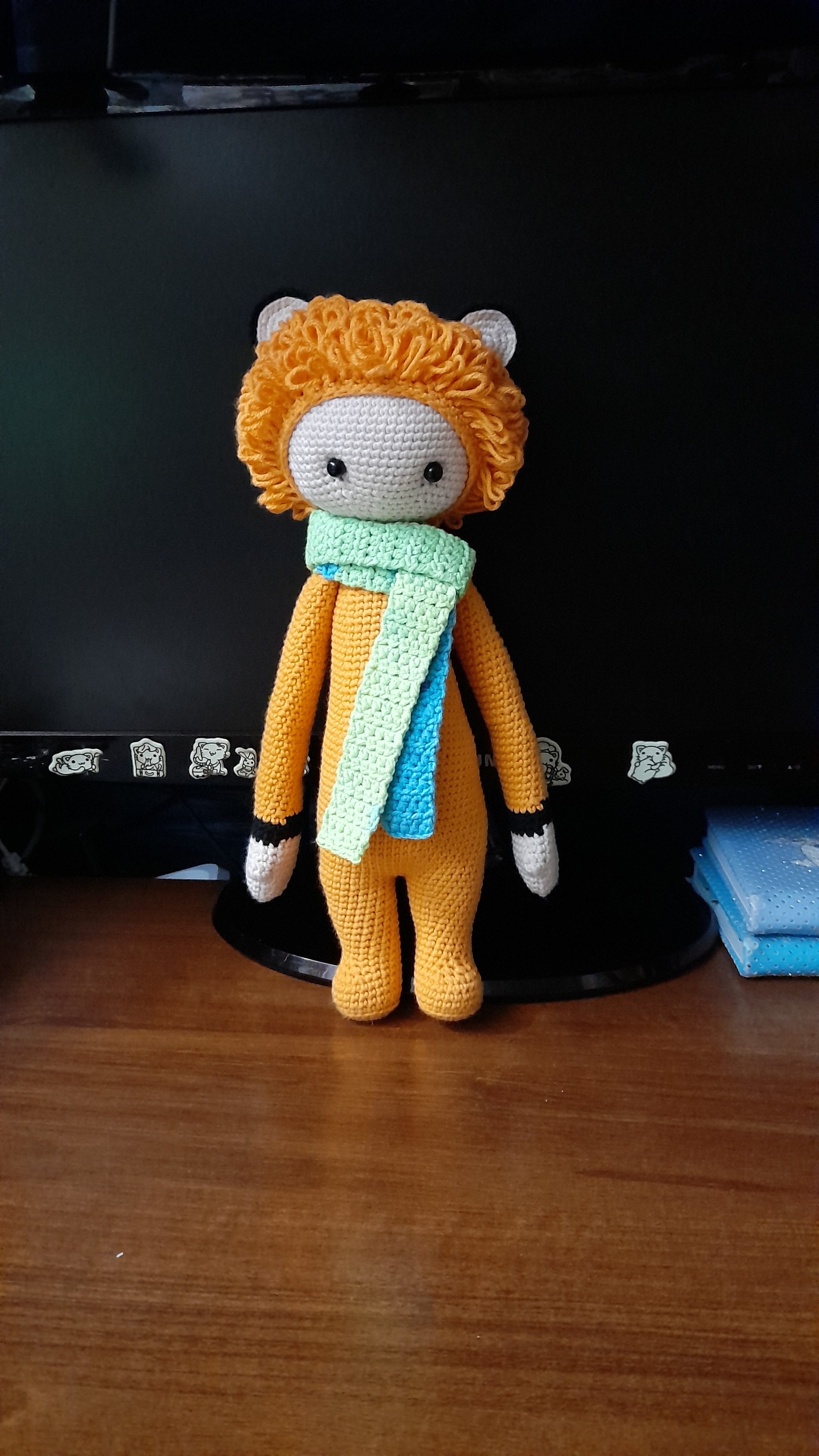 Пряжа ализе коттон голд, крючок двойка, глазки на металлическом креплении. Времени на него ушло 4-5 дней с перерывами на работу и компьютерные игры.