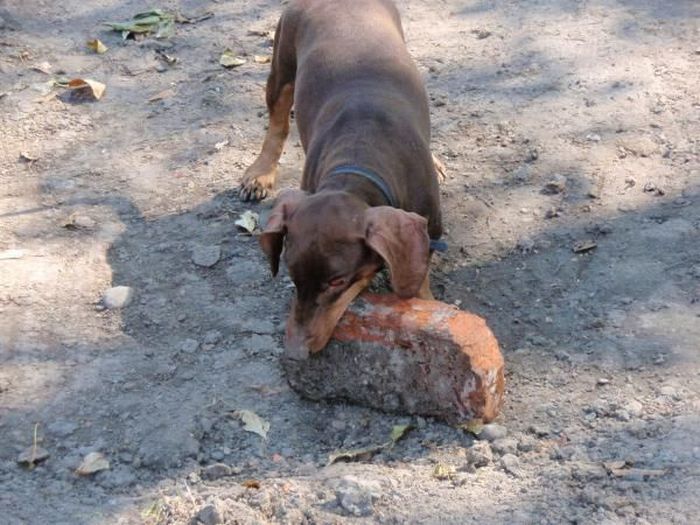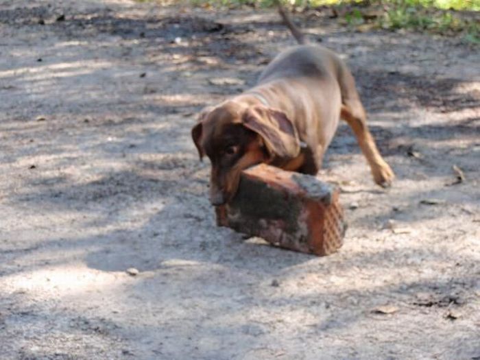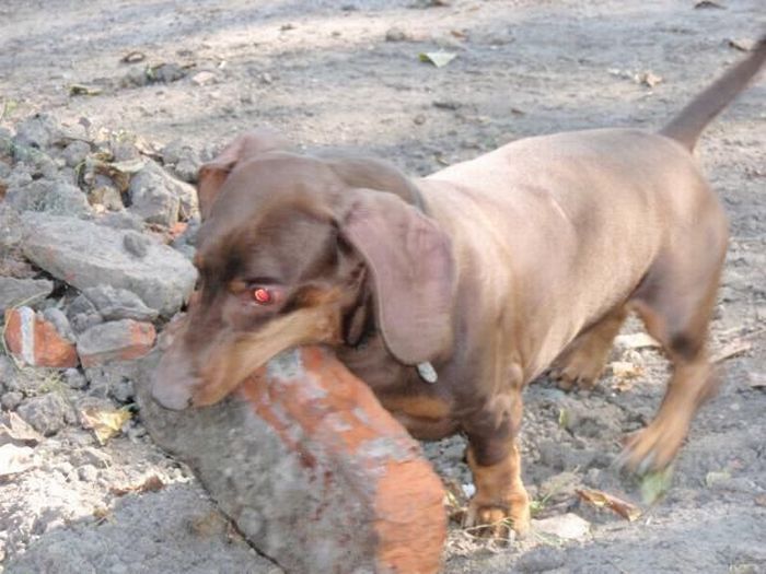 83 Khamza.Atabaev Любимая игрушка таксы 8 лет назад Собака Такса Игрушки Кирпичи Интересное Длиннопост