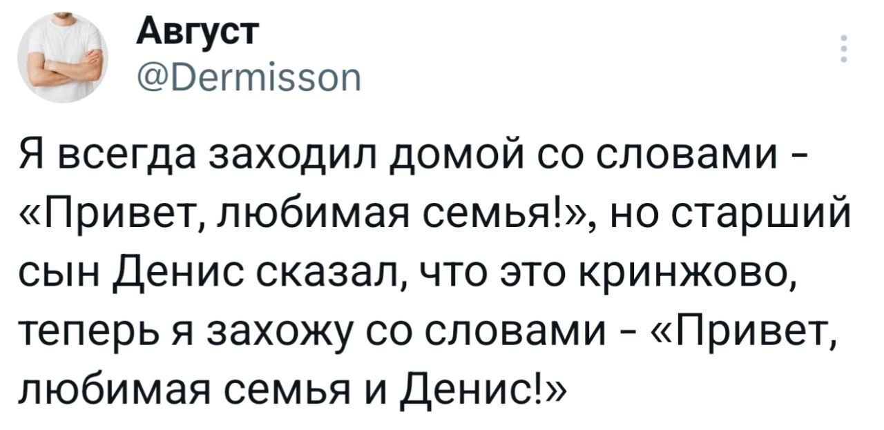 9385 VerhovniyMemolog Юмор для всех и каждого Юмор Любимая семья 4 месяца назад Телеграм - Три мема внутривенно Юмор Скриншот X (Twitter) Семья Telegram (ссылка) Родители и дети 1.3K 24 16 4 3 2 1 1 Ещё 3