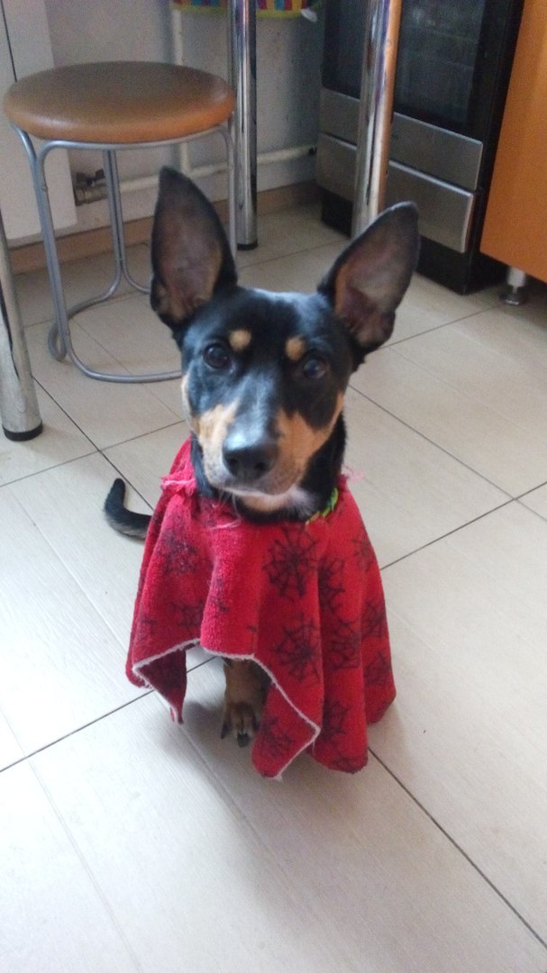 У собакена есть любимое одеялко, которое он грызет, когда ему очень радостно. Недавно обнаружили дырку и решили поругать, но потом передумали).