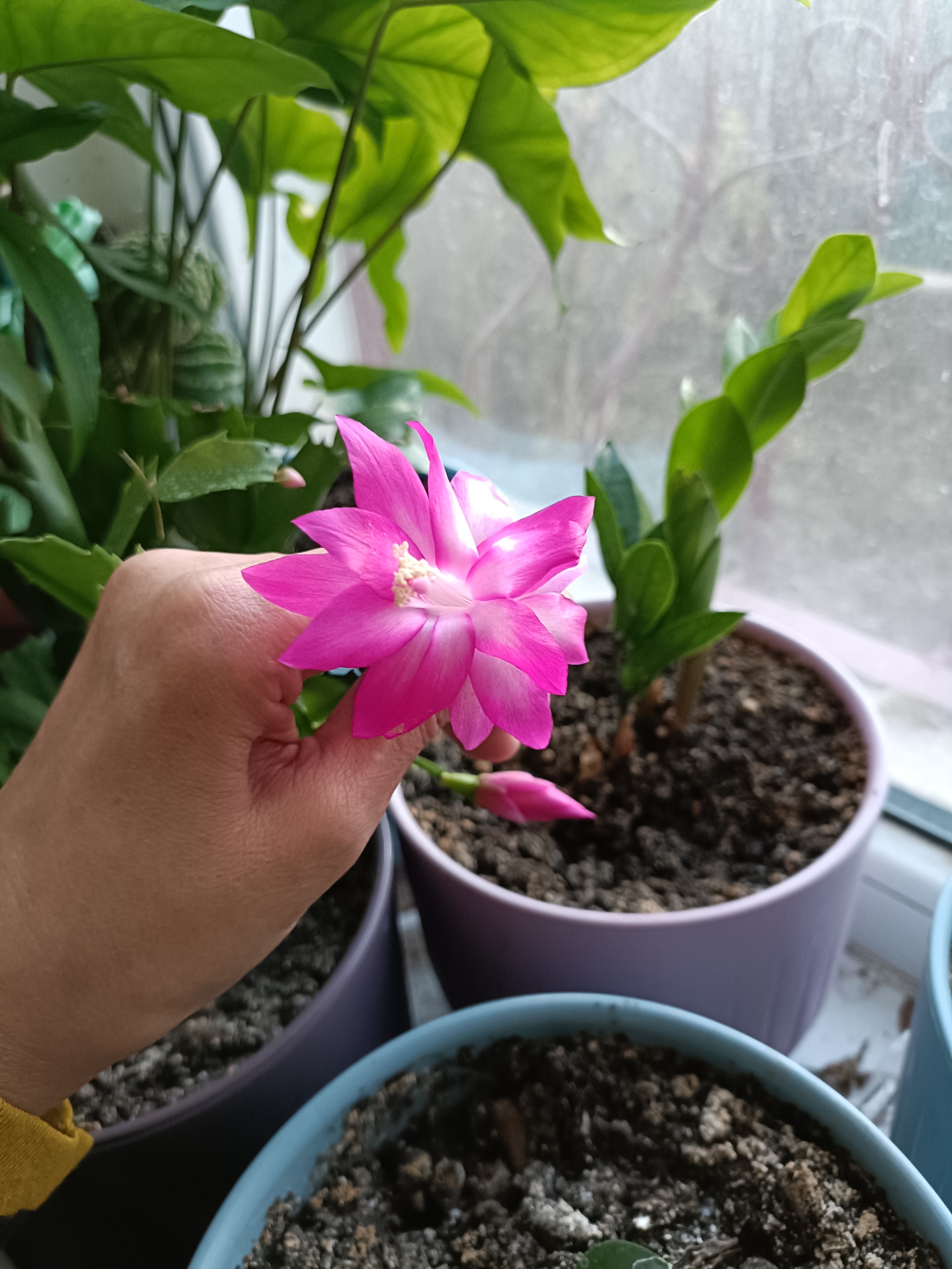 Всегда любила комнатные растения. Но в последнее время радуют только цветущие. Не обязательно всегда, можно раз в год или полгода. Или вообще, в перспективе. Сейчас время цветения декабристов. У меня три цветка. И все они радуют большими лиловыми цветами.