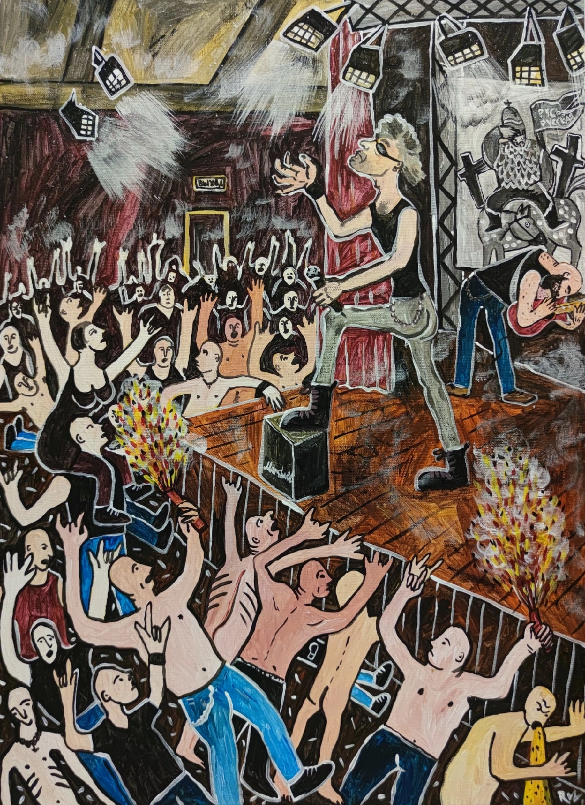 3 Ryazanovavv Люблю ходить на концертики,но на танцпол уж не ходок,замесят же! 8 месяцев назад "Слэм в Горбушке" х/а 55/75 [моё] Живопись Авторская живопись Художник Холст Русский рок Ещё 0