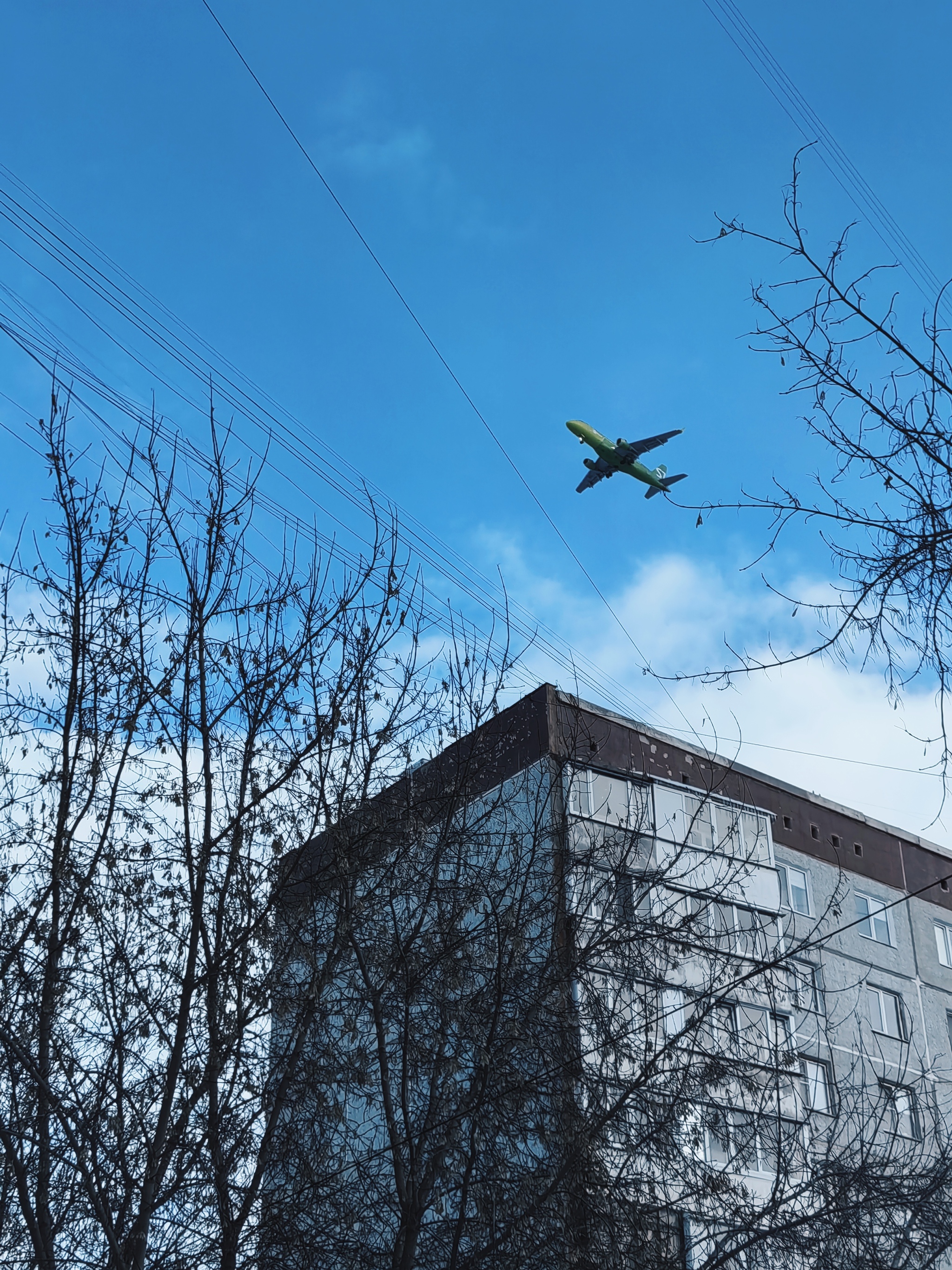 За вчера поймала 4 самолета, композиция выстроена случайным образом. Где пролетал самолет, там и поймала, специально не караулила. S7 получился на фоне домов, белый самолетик как будто запутался в трамвайных проводах.