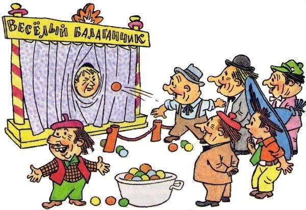 Что значит "нет"? Очень даже есть, распространённый аттракцион в Америке. Не прям один в один, но сразу напоминает Незнайку, называется Dunk tank. https://en.wikipedia.org/wiki/Dunk_tank Человек сидит над бочкой с водой, играющий кидает мяч в мишень, если попадает - человек падает в воду.