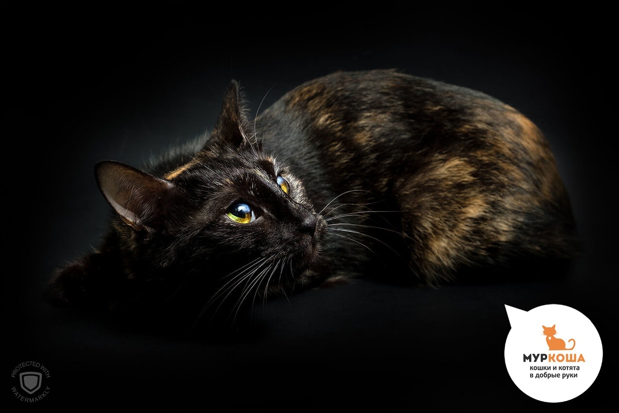 Вы ведь наверняка помните Землянику? У этой кошечки уникальная внешность – из-за бельма ее глаза имеют потрясающий желто-голубой цвет. А уж в сочетании с черепаховым окрасом…