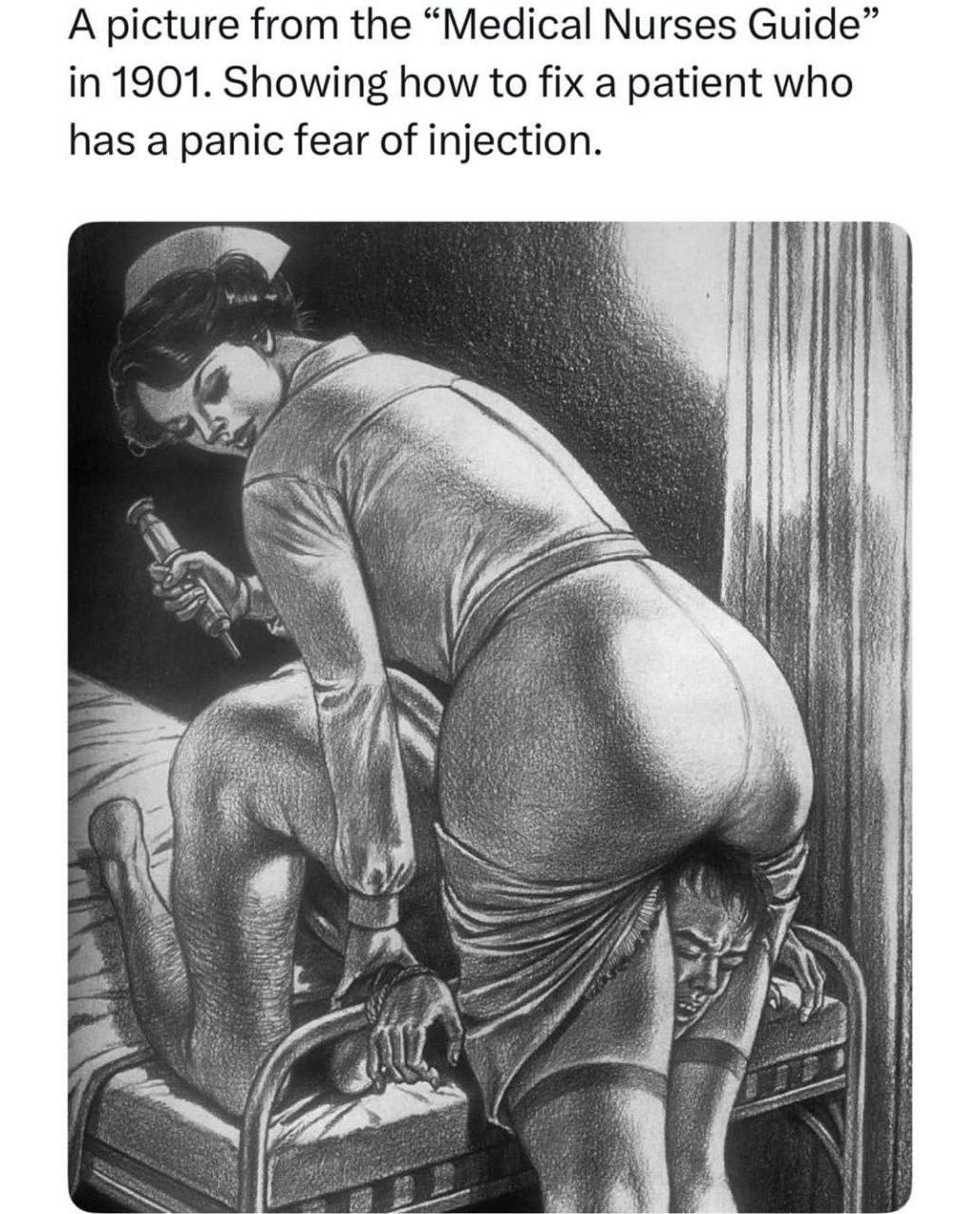 1299 Musrepov Юмор для всех и каждого Юмор Любознательным на заметку 30 дней назад Рисунок из «Руководства по сестринскому делу» 1901 года издания, наглядно иллюстрирующий, как следует фиксировать пациентов, которые панически боятся уколов. Укол Руководство Совет Юмор Лайфхак Повтор 307 167 27 11 9 5 5 2 Ещё 3