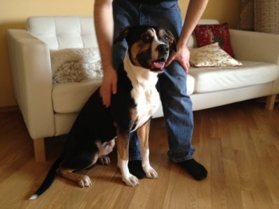 Прибился пес к знакомым, они его забрали себе на время, тк холода были жуткие, собака похожа на домашнюю на все 100% , с такой короткой шерстью просто не выживет на улице. Тк у знакомых есть свой пес, который никак не принимает новичка, - потеряшку хотят пристроить... собаку никто не ищет, размещали объявления везде и всюду.