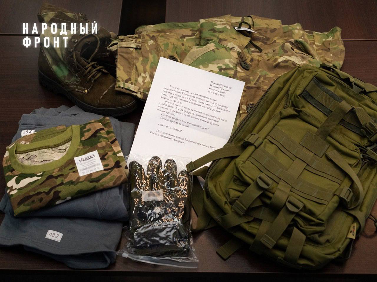 Бывший подполковник запаса Космических войск России Анатолий Андреев из Новосибирска передал солдатам комплект военной формы, специальную обувь, рюкзак, тактические перчатки и нательное белье.