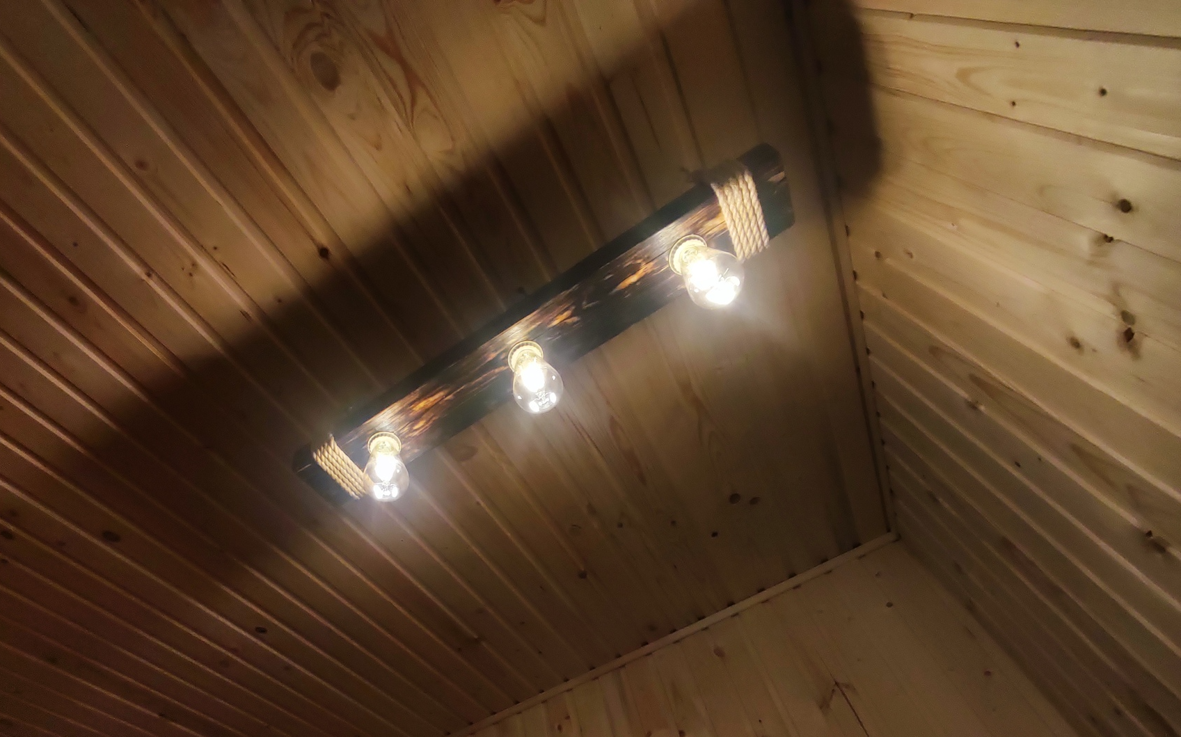 Баня=дерево и захотелось мне светильник в стиле "рустик".