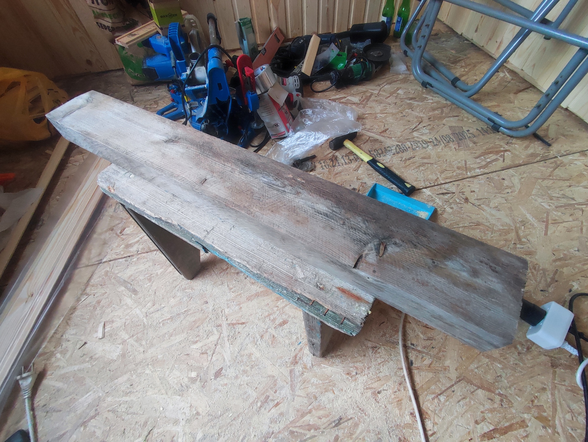 И принялся и за поиски материалов. За основу взял кусок доски 50*100, оставшийся от постройки каркаса.