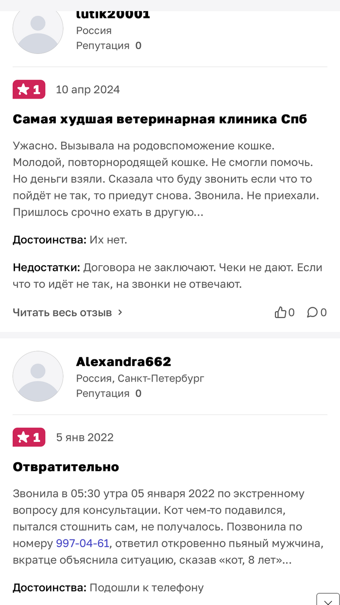 Такое название было дано, по всей видимости для того, чтобы создать ощущение короткого номера для вызова, для придания серьезности, но это совсем не так. После звонка в клинику, мужчина сказал, что врач к нам приедет в течение пары часов. «Врач» действительно приехал достаточно быстро. Только это был не врач, а фотограф, как выяснилось в дальнейшем. Нет, это не был врач, который подрабатывает фотографом. Это был фотограф, который подрабатывает врачом. Вколов лошадиную дозу наркоза, приехавший юноша, полтора часа ковырял орган кота. Мама просила прекратить, но он говорил что вот-вот уже получилось. Через полтора часа, расковыряв орган кота, он набрал воду для промывания его мочевого пузыря из-под крана, ИЗ ПОД КРАНА! Промыл и уехал. Кот остался лежать. Через час, два, четыре, кот не пришел в себя. Мама разбудила нас в слезах - говорит кот умер . Приехал мой муж. Они решили, что кот умер. Муж начал собираться хоронить кота, под слёзы мамы, под мои всхлипывания в трубку, поскольку дыхания не было заметно. Но затем решили проверить посветив в глаза коту фонариком и заметили какие-то слегка заметные признаки сужения зрачка. Муж схватил кота и ринулся в клинику. В клинике (после посещения нас этим горе «специалистом» прошло 6!!! Часов) констатировали сильнейшую передозировку наркозом. Кот был фактически мёртвым. Они начали проводить реанимацию, затем подключали к капельницам. Это длилось 3 часа! Только через три часа активной реанимации, кот начал приходить в себя. Половой орган кота был разорван в нескольких местах. Нас сразу предупредили в клинике, что спасать тут нечего. Что сейчас кот операцию не перенесёт, катетер снимать ему теперь нельзя и как только он придёт в себя и восстановится, необходимо провести полное удаление органа.