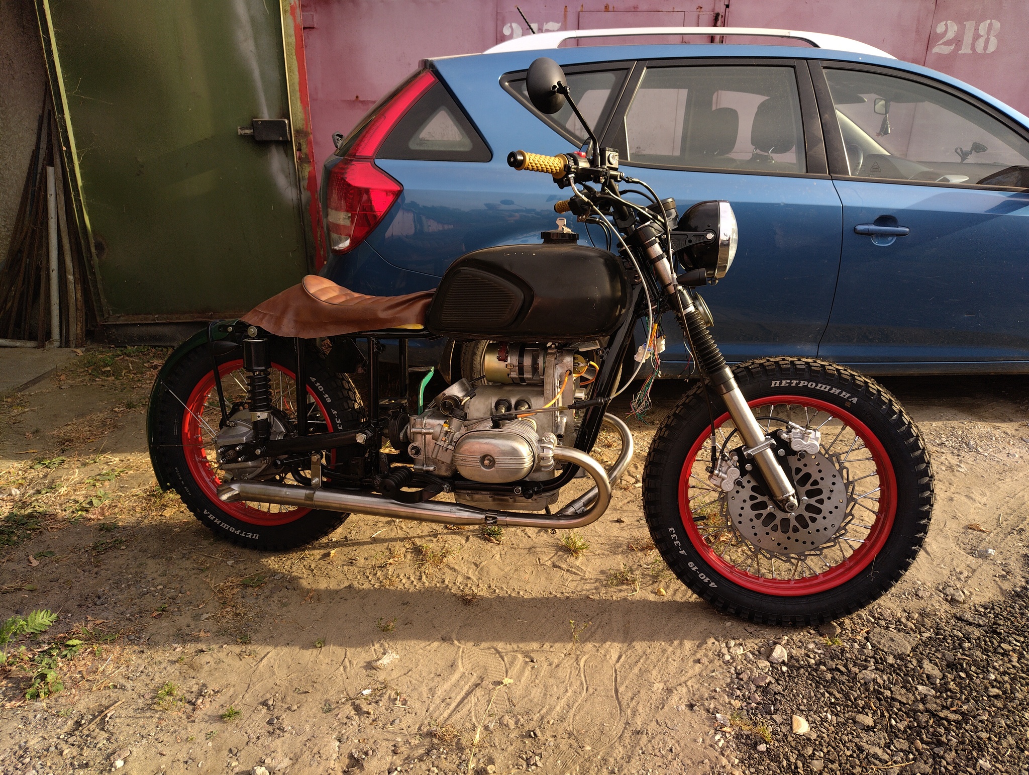 По мне отличный проект. Понятно, что не реставрация, а аппарат для езды (воздушный фильтр современный, зеркала, полнопоточный маслофильтр в 70-е был только в мечтах, как и такая окраска мотоцикла). Но сделано классно