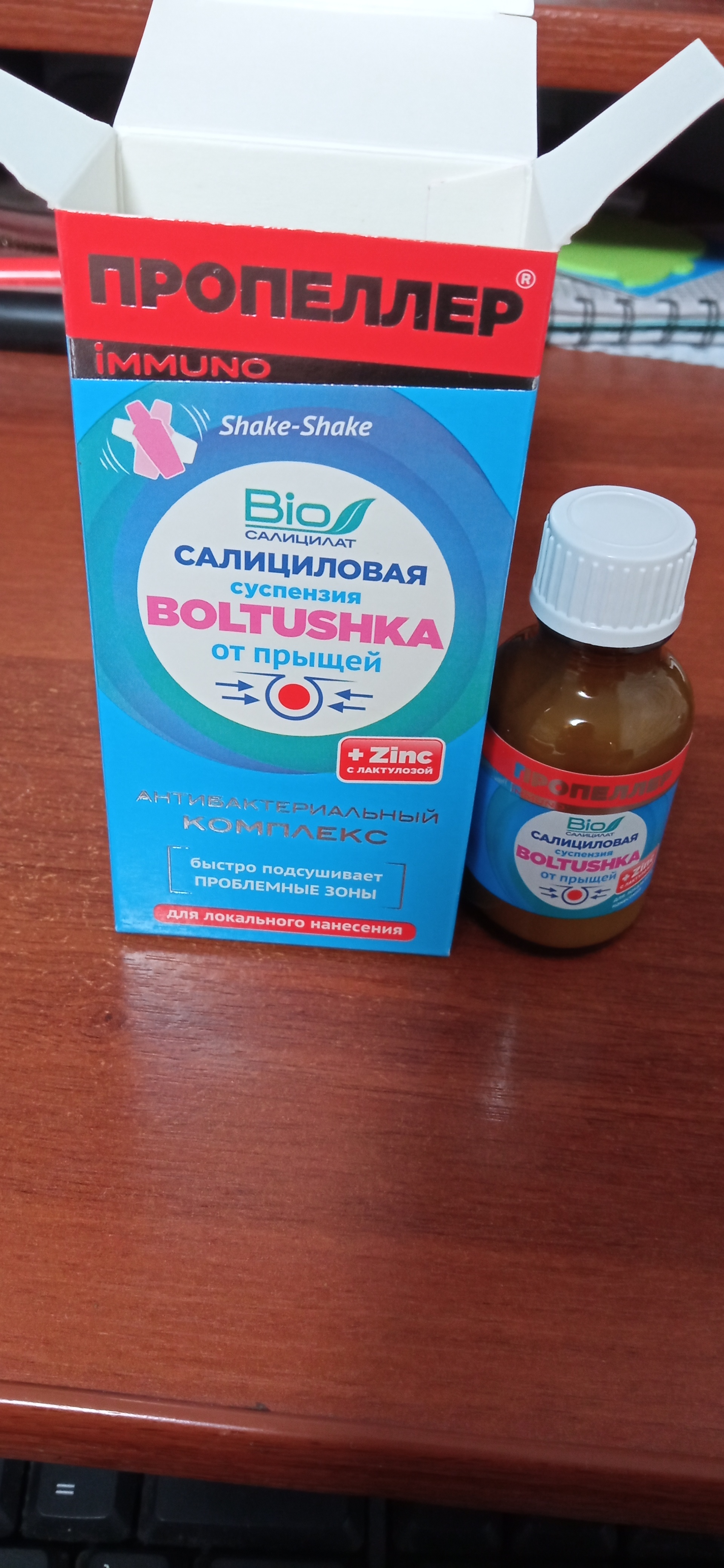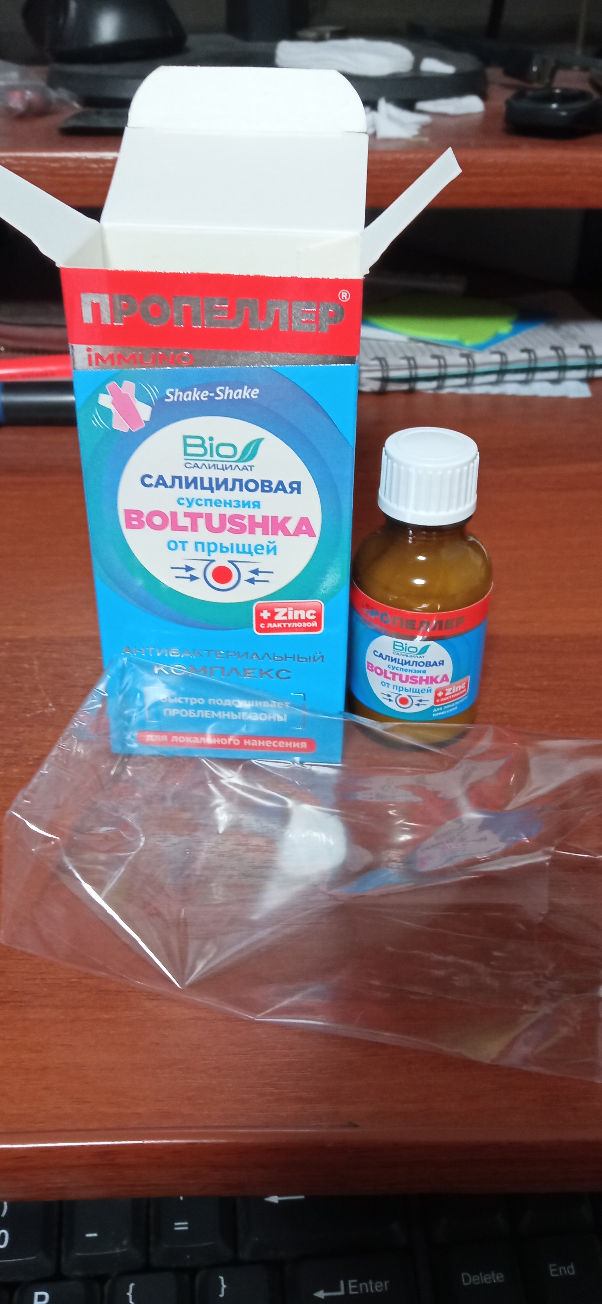 Купил сегодня "болтушку" лосьон от прыщей в магазине на букву М с косметикой. Стоил он 180р, но сегодня по акции 149р. Не мог не сфотографировать. Упаковка в целофане, чтобы нельзя было внутрь заглянуть. Справедливости ради, болтушка всегда была в маленькой баночке у других фирм. Прикладываю фото.