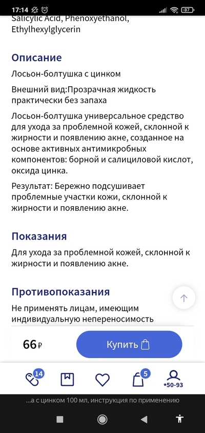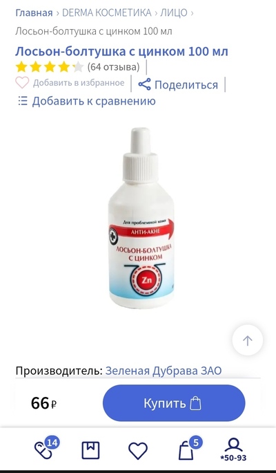 Купил сегодня "болтушку" лосьон от прыщей в магазине на букву М с косметикой. Стоил он 180р, но сегодня по акции 149р. Не мог не сфотографировать. Упаковка в целофане, чтобы нельзя было внутрь заглянуть. Справедливости ради, болтушка всегда была в маленькой баночке у других фирм. Прикладываю фото.