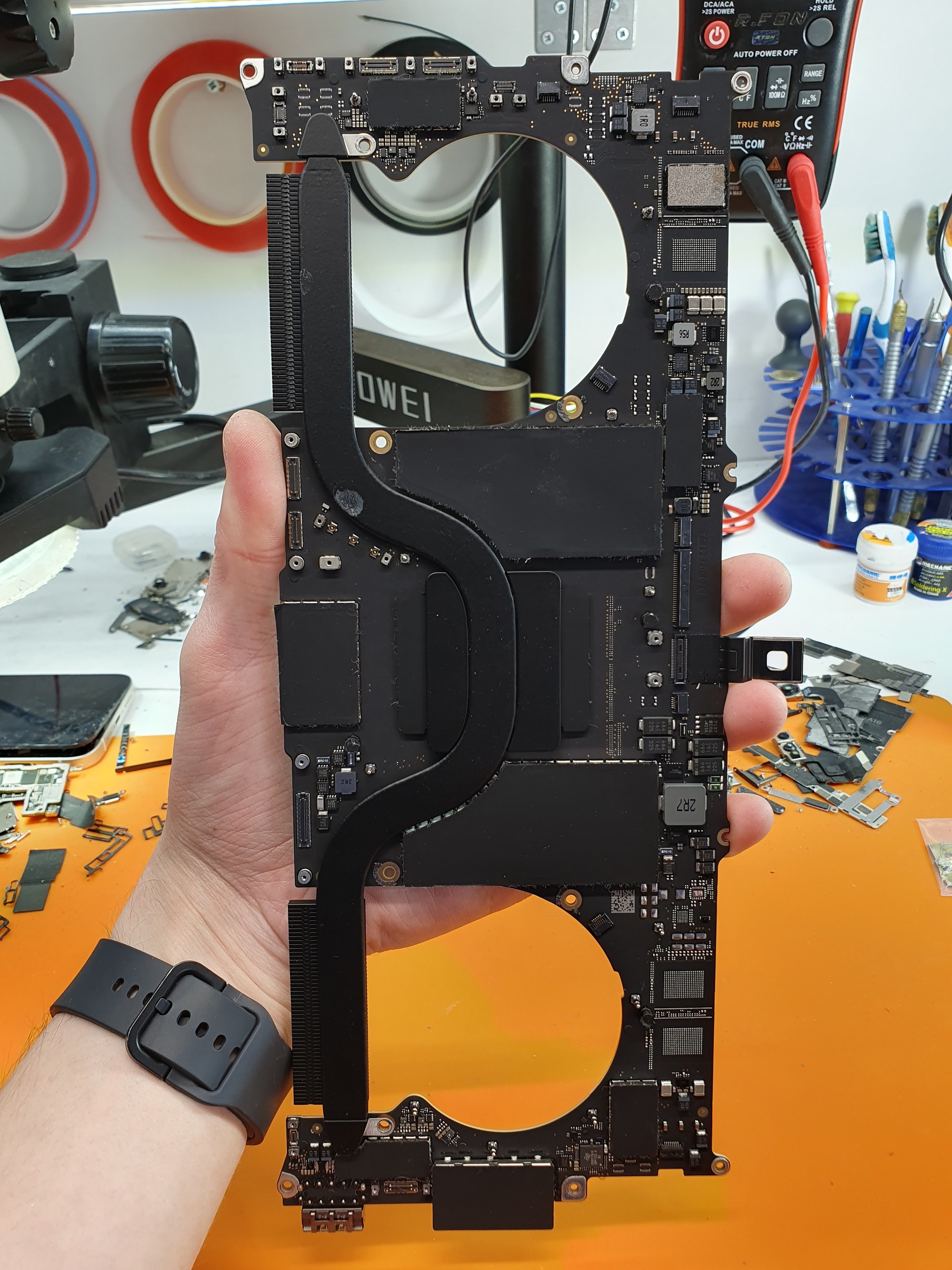 После, как и любой iphone или ipad, при замене чипа, мак нужно прошить и только он не упадёт в аварийный режим сам - ему нужно помочь и для этого замыкаю необходимые дорожки на плате force_dfu, а после прошиваю через свой шикарный ноут)