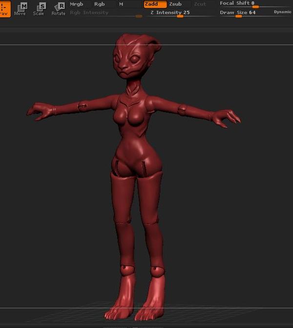 Так она выглядела, когда я начала моделировать в Zbrush, а в конце поста будет результат работы в виде распечатанной и одетой инопланетной няшке.