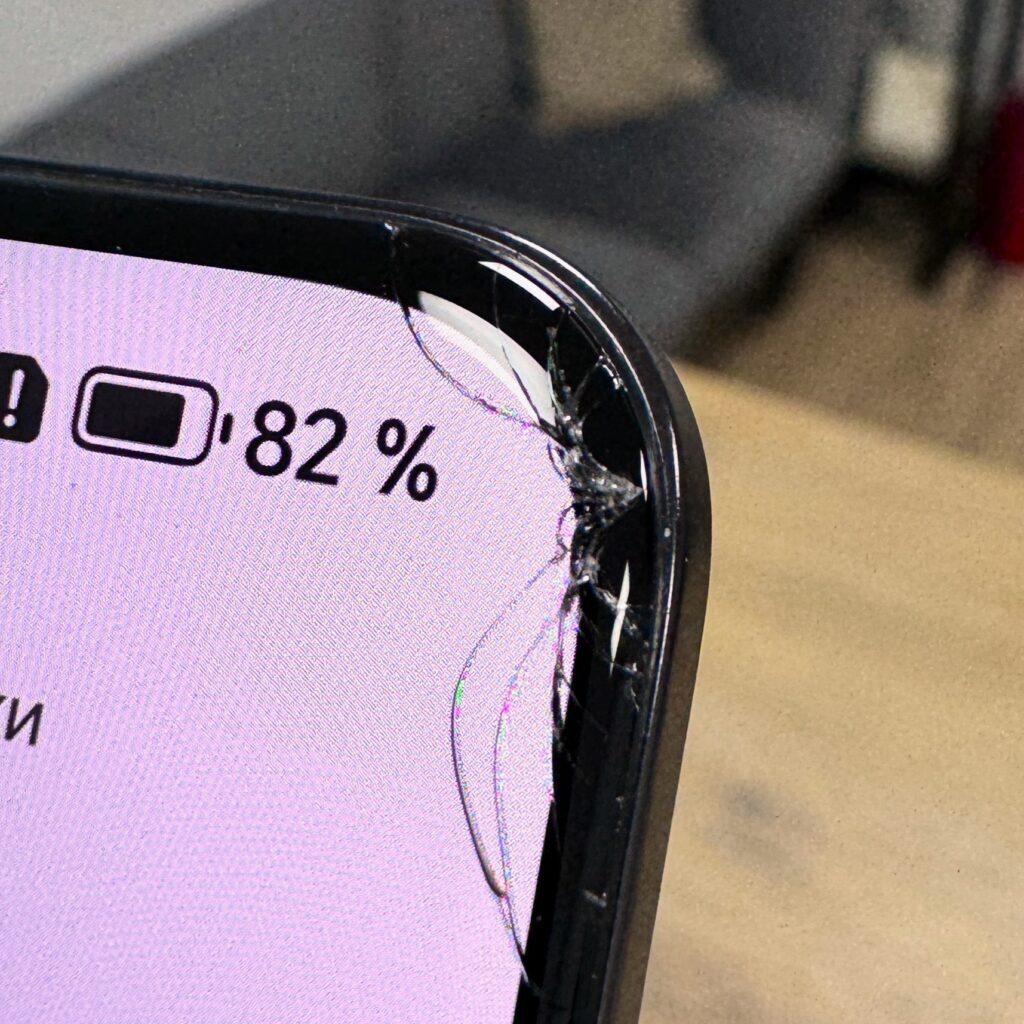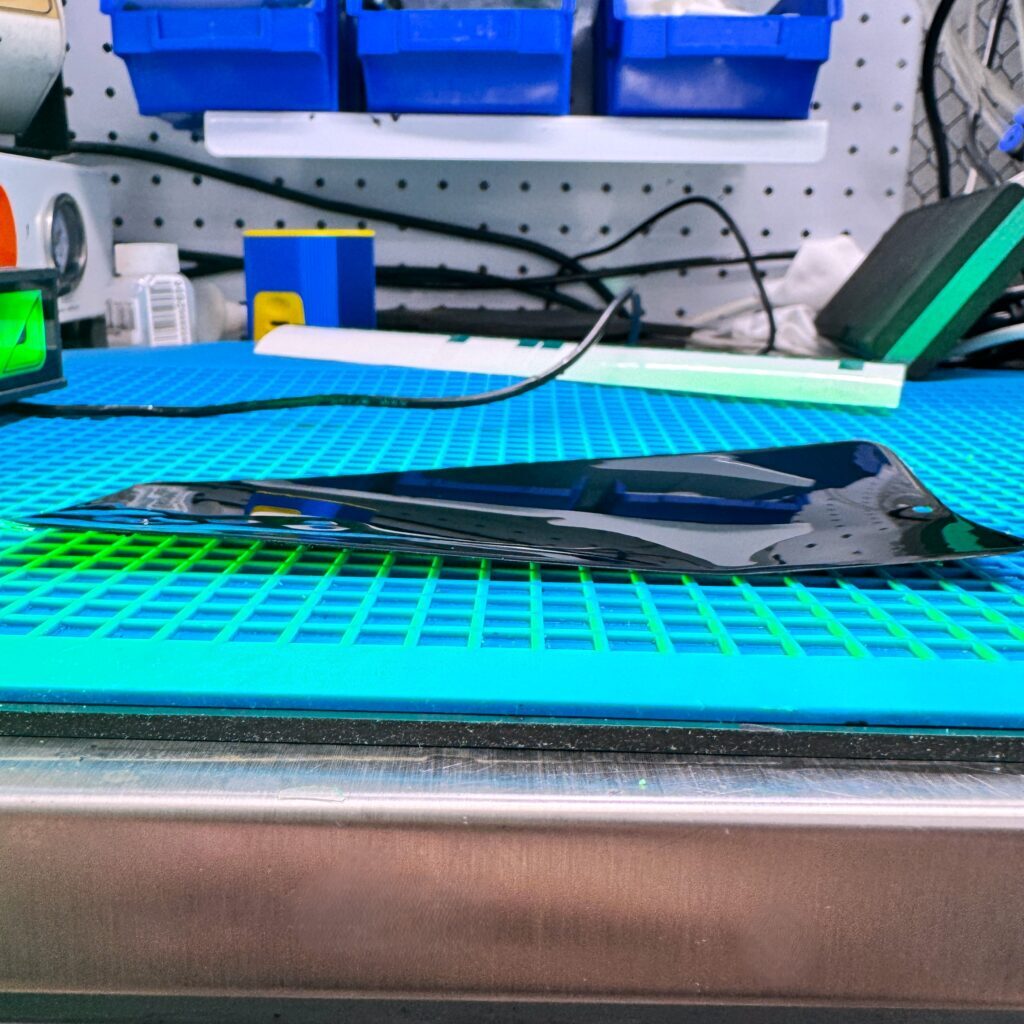 Струна прорезает оптическую пленку на матрице, отделяя разбитое стекло.