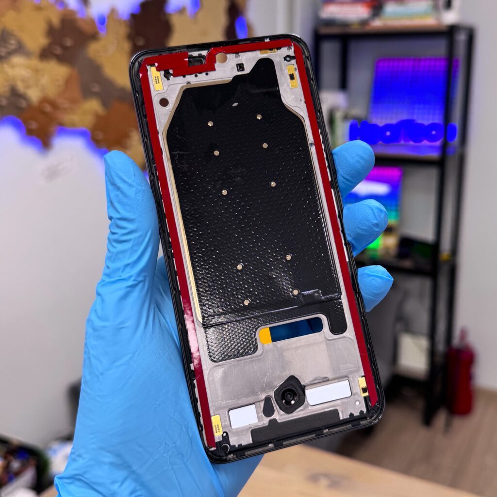 Затем разбираем телефон до голой рамы.