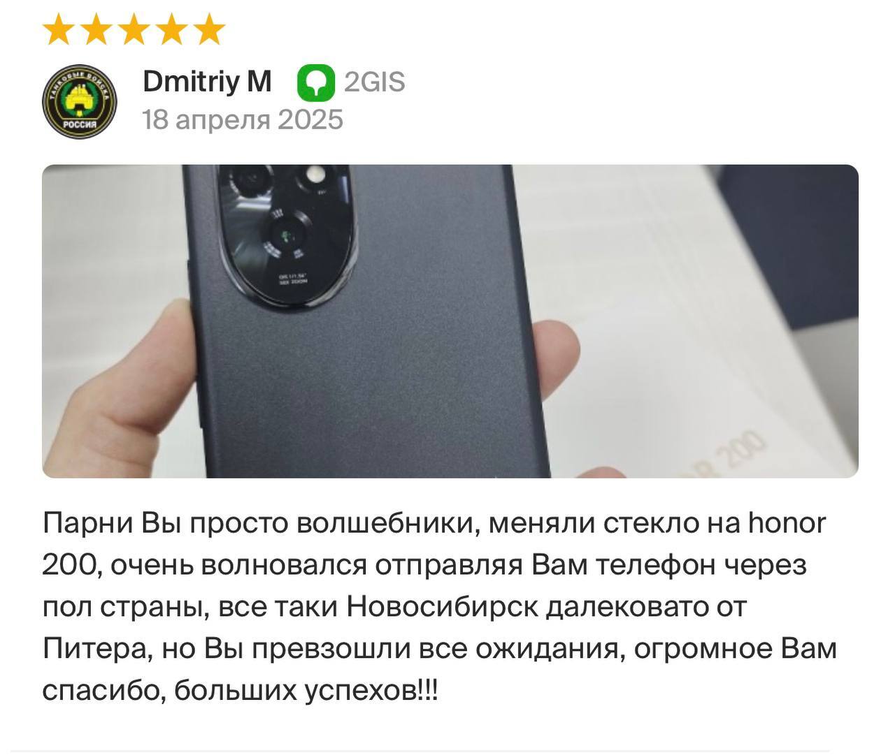 Кстати, за этот телефон мы получили отзыв на 5 звезд в 2GIS)