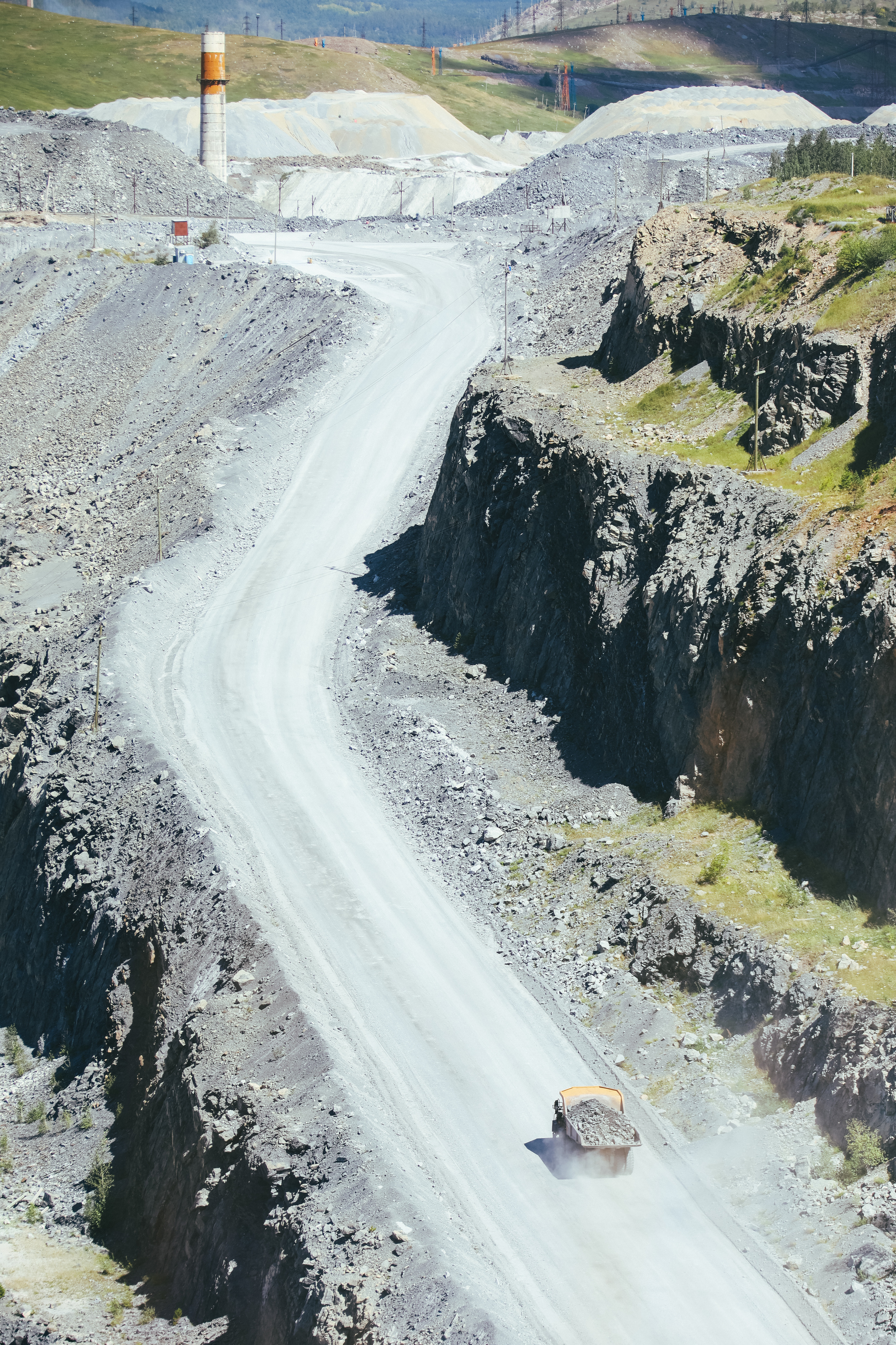 Детский восторг от посещения Карагайского карьера в городе Сатка. Мааааленькие Белазы натужно гудят по серпантину, вывозя магнезитовую руду на дробилку / сортировку.