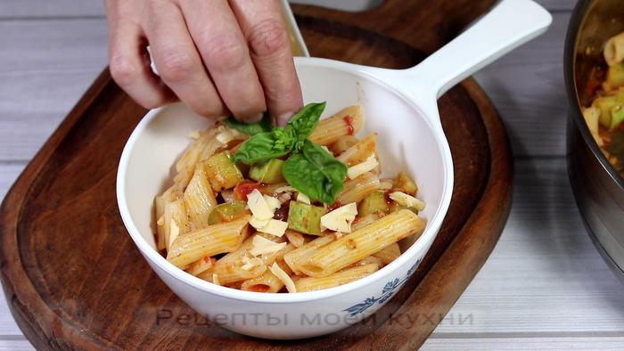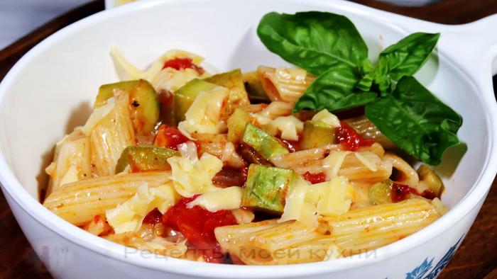 Блюдо из макарон с кабачками хорошо подойдёт для обеда или ужина. Всего 20 минут и на вашем столе появится превосходное, сытное блюдо.