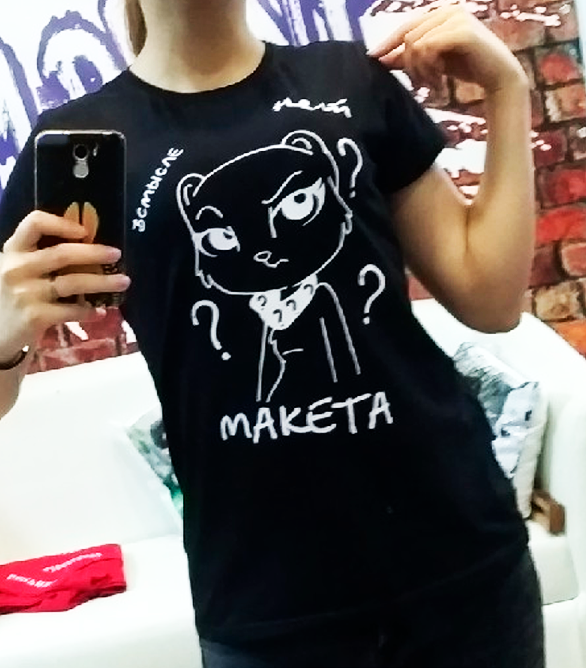 Работаю в мастерской по нанесению принтов на одежду, я как раз тот кто наносит принты. А еще у нас есть менеджер который общается с клиентами. И периодически мне приходят заказы, а макета по нанесению нет о_0?? Менеджер конечно отшучивается, макеты находит, но недавно подгорело и я сделала себе такую рабочую футболку. Теперь макет есть всегда))