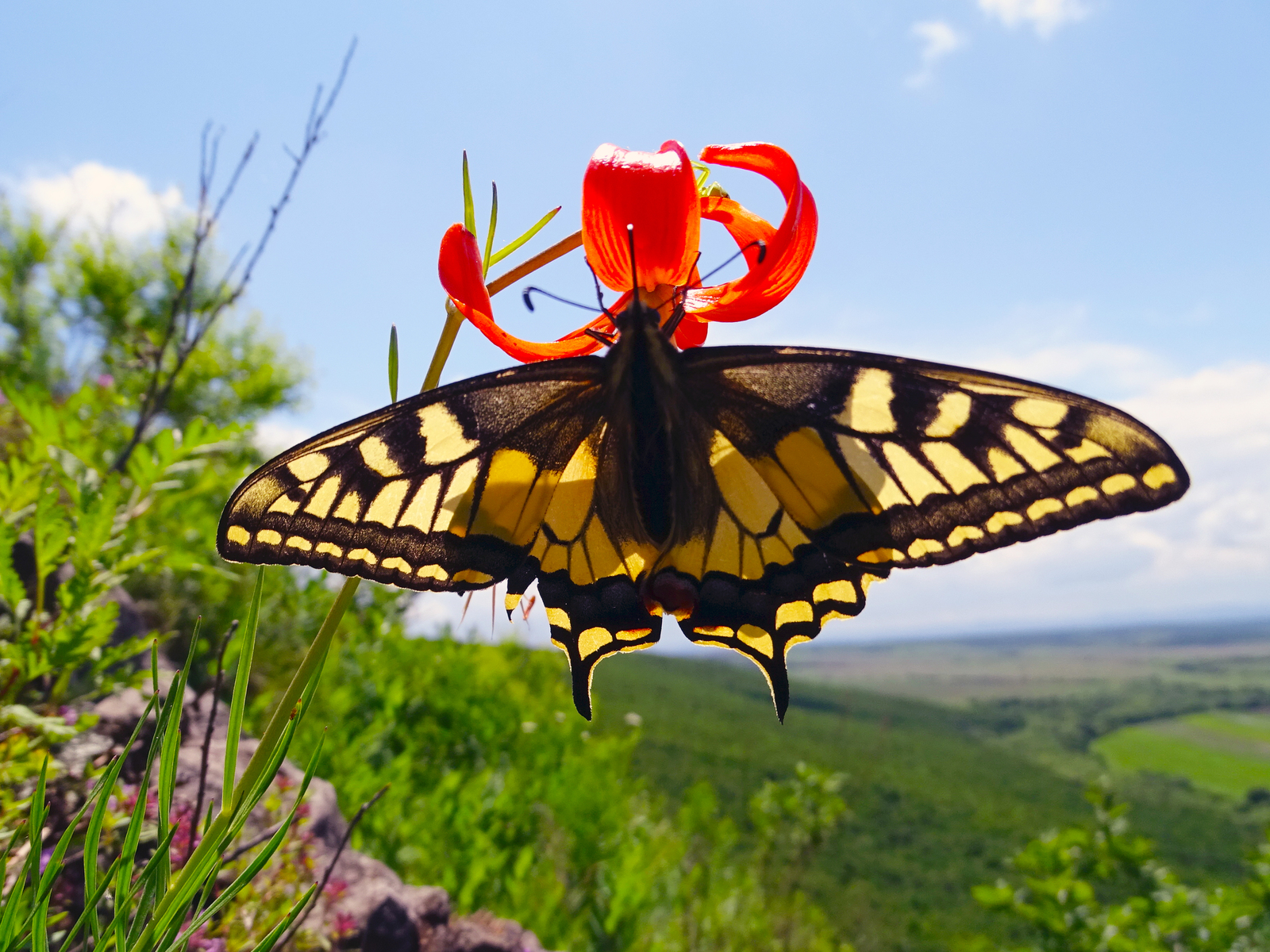 Снимок этого махаона, сделан на вершине потухшего вулкана Сенькина шапка. в Октябрьском районе.