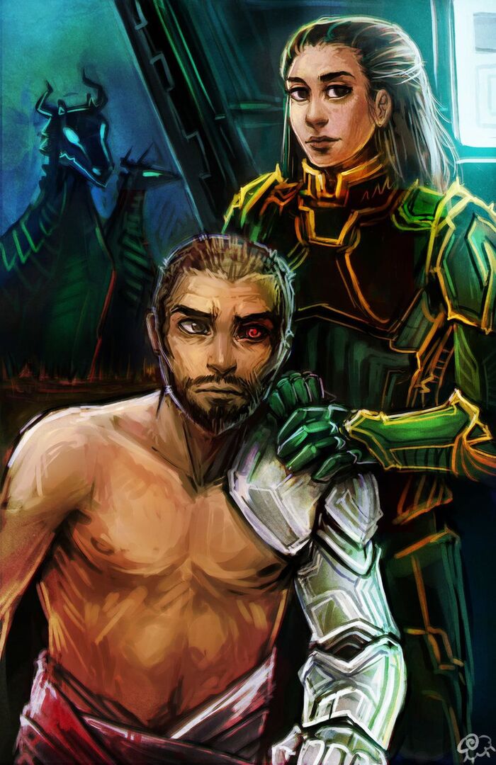 Дракон и Оружейник (он же Отступник, он же Коллин Уоллис). Как говорится, переживал за их отношения больше, чем за свои (с). Самая трогательная и прикольная пара всего тайтла по мнению одного вечно сонного хомяка.
