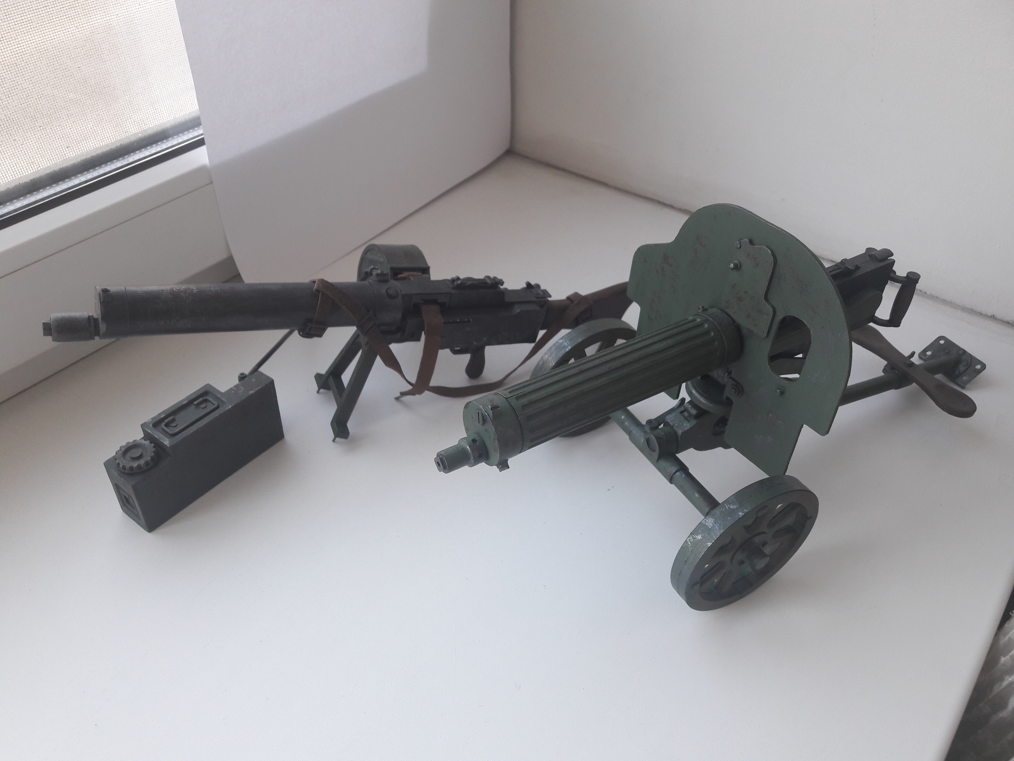 Но что же новенького сотворить на сей раз? Подумал я и решил: ничего, ведь у нас уже есть пулемет системы Максима. Результат небольших косметических изменений и добавления станка вы можете наблюдать на следующих изображениях...