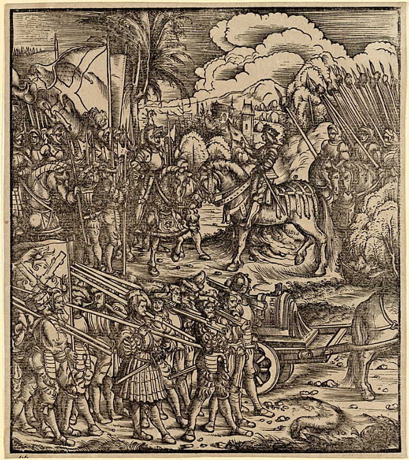 В эпоху Максимилиана работали величайшие художники Германии. Дюрер, получивший от него пожизненную пенсию, создавал его портреты в живописи и гравюре. По заказу императора он украсил рисунками его молитвенник. Испытывая финансовые трудности, Максимилиан не мог прославить свое правление реальной триумфальной аркой. Тогда он заказал Дюреру «Триумфальную арку» в гравюре. Дюрер выполнил этот заказ вместе со своей мастерской и своими учениками. Стараясь сохранить для потомков историю своей жизни, Максимилиан задумал написать хронику, назвав ее «Вейскуниг» («Белый король»). Для этой хроники под его диктовку записывался текст, который сопровождали иллюстрации, исполненные в технике гравюры на дереве.