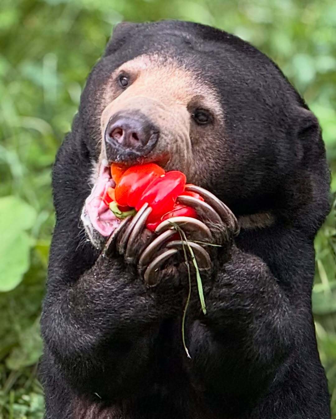 32 Kotbeg0 Медвежий угол Малайский медведь ест сладкий перец 5 месяцев назад Фотограф Trudie Noorbeek. Малайский медведь Медведи Хищные животные Дикие животные Зоопарк Кормление Перец Фотография 2 Ещё 0