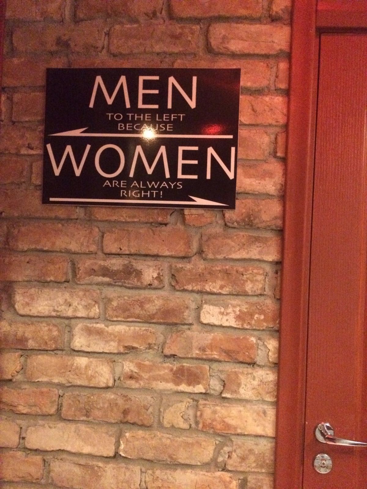 miljonscom Мальчики на лево... 9 лет назад Перевод: Мужчины налево, потому, что женщины всегда правы.Игра слов. Right - право и to be right - быть правым. Miljoncom Елгава