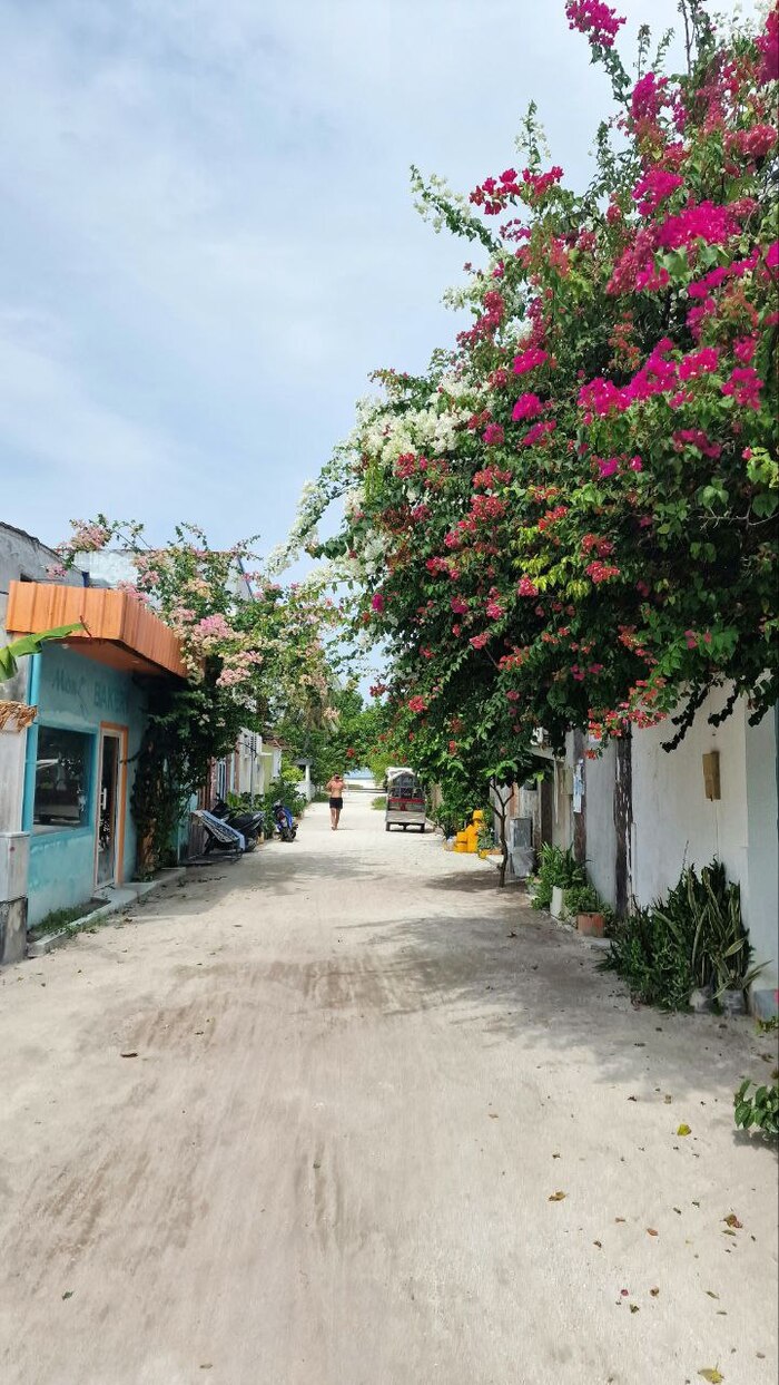 Я была на Гурайдо. Маафуши мне показался слишком городского типа, там много высоток. А вот Гурайдо - деревня деревней, очень тихий, маленький, зелёный и в цветах. Весь остров можно обойти за час.
