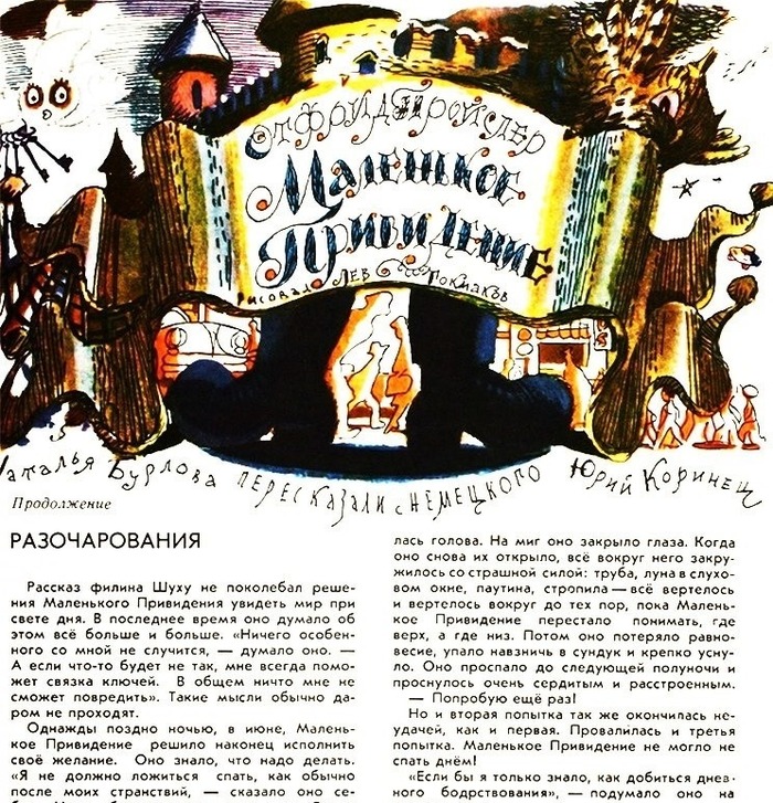 Что уж говорить о последней книге трилогии Пройслера о юной нечисти - "Маленькое привидение", увидевшее свет в том же журнале в 1981 году с иллюстрациями Льва Токмакова. Я уже учился в старших классах, считал себя взрослым и солидным человеком, пробовал курить - и в гробу видал всяких "Мурзилок".