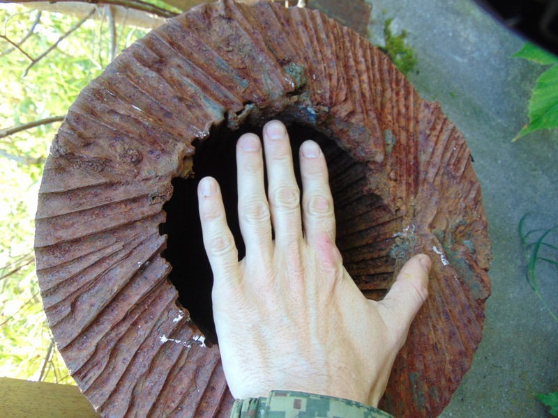 А это следующее орудие - МУ-1 № 11. Чуть более целое. И обрезки ствола лежат рядом. Ствол разрезан в 2 местах.