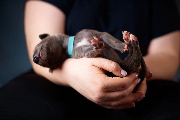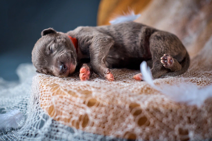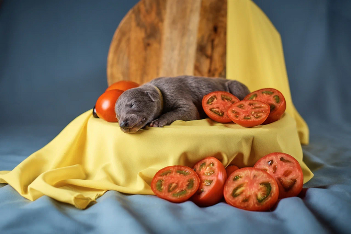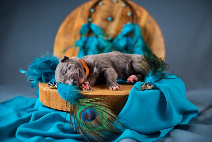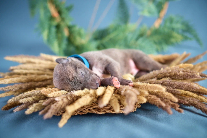 Мама, правда, решила, что все щенки будут прямо совсем "её детки", потому малыши получились исключительно голубые и голубо-тигровые. Зато сук и кобелей ровно по четыре.:)