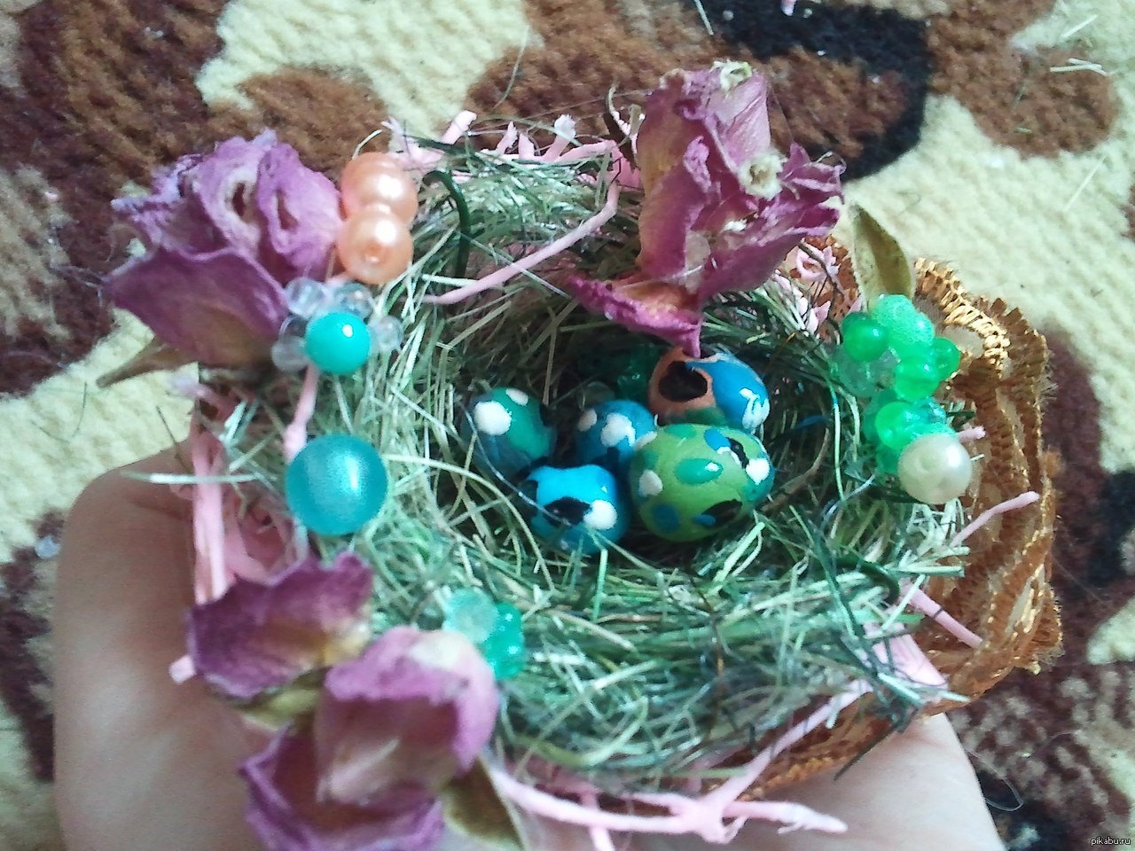 3 LoisLaen Хобби Маленький подарок к предстоящей Пасхе. 11 лет назад Увидела в новостной ленте контакта декоративное гнездо с яйцами.Решила попробовать сделать что-то похожее.Пикабу, вам на оценку.В комментариях еще 2. [моё] Моё Пасха Рукоделие Цветы