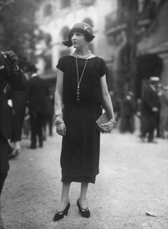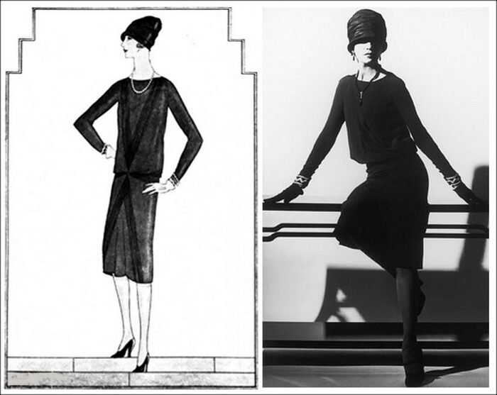 Первое маленькое черное платье выглядело весьма просто- длинна ниже колена, низкая посадка, длинные узкие рукава и защип, который образовывал складку на ткани. Тем не менее даже такое платье в ту пору стало образцом шика. В 1926 году журнал Vogue опубликовал на своих страницах платье, назвав его «Форд», это означало, что оно как и знаменитая машина Форд, уникально и доступно только в черном цвете.