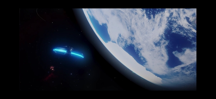 Вступительная сцена с падением летающей тарелки.